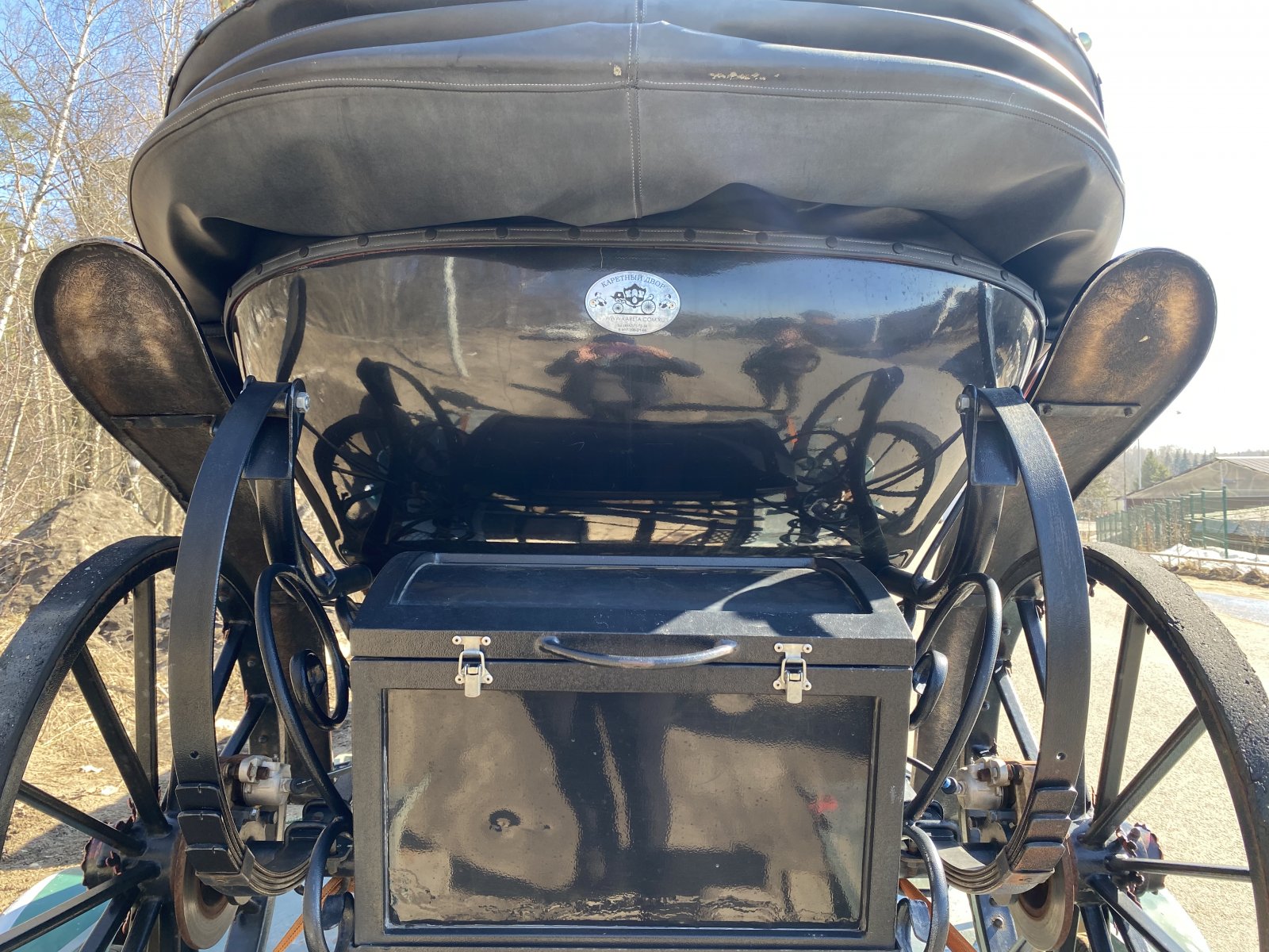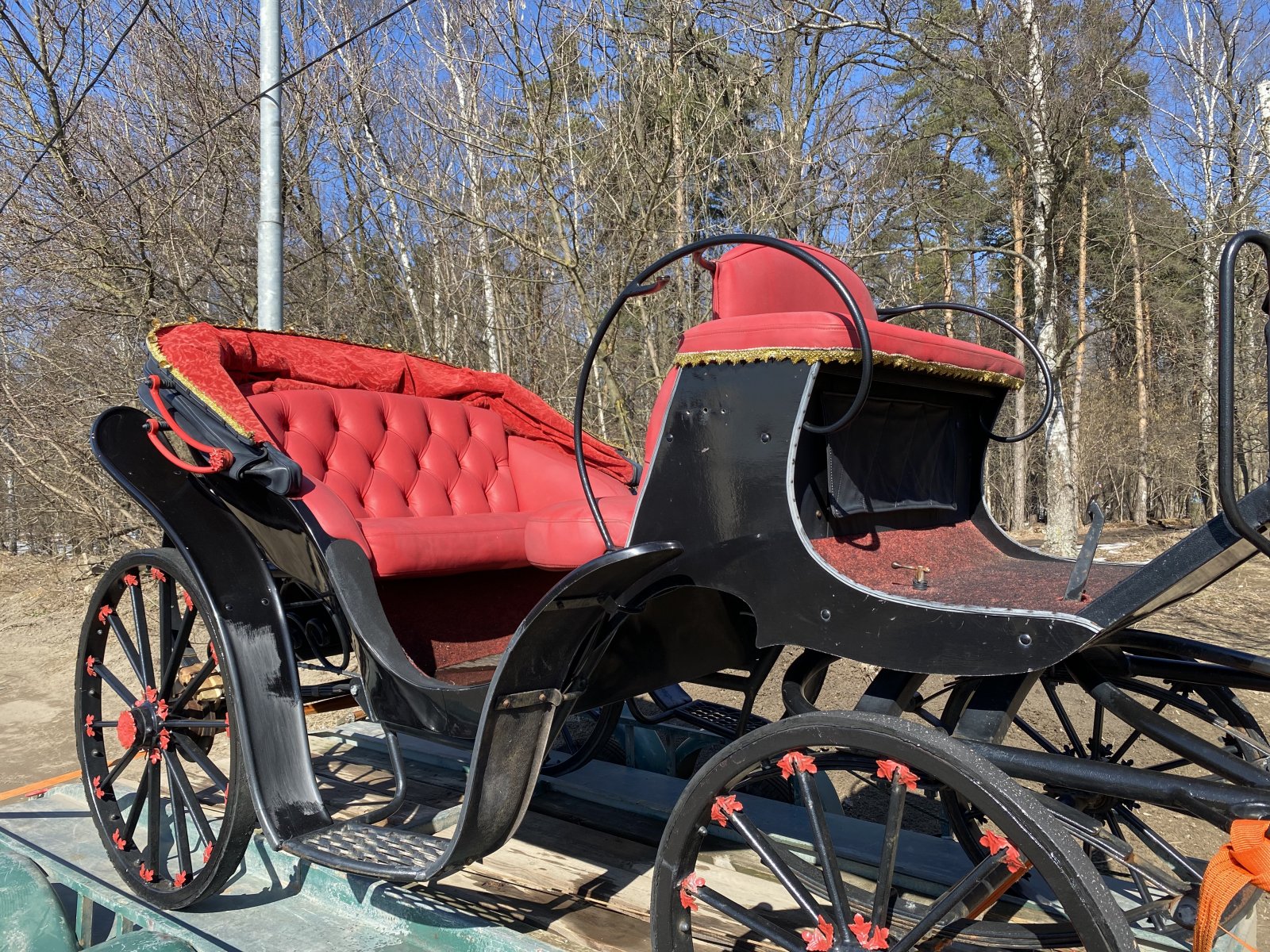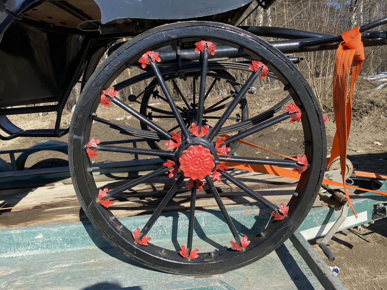 Легкий, манёвренный. Установлен гидравлический тормоз. Подходит как для одной лошади ( под русскую или европейскую упряжь), так и для пары.