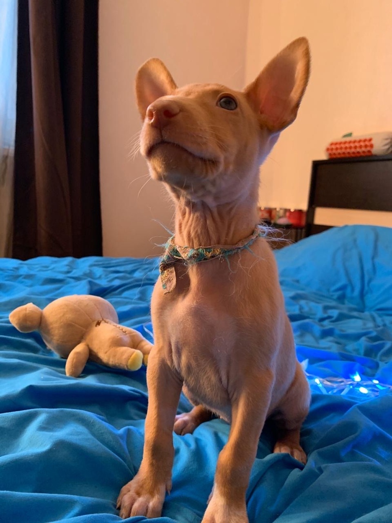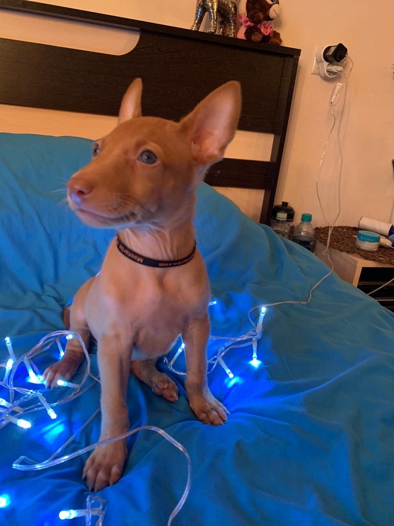 Хочу рассказать вам про фараонову собаку, что есть у меня. Очень удивительная зверюга, в полной мере можно сказать, что собака конника, потому что бежать за конем, ее прямая обязанность, коней очень любит, они ее тоже, шалят вместе. Говорят, что это самая древняя собака, что лежат на пирамидах фараонов. Относятся к разряду примитивных. Бегали за зайцами по степям Мальты, посему другое название мальтийская борзая. Достаточно редкая собака в наши дни, удивительно красива, обязательно рыжая, причем вся, даже глаза и усы и когти. Мне напоминает английскую чистокровку. Очень энергична, игривая и сильная, с хорошим здоровьем, хорошей генетикой. Но, достаточно своенравна. Вот щенки от такой собаки предлагается к брони. Мама и папа титулованные чемпионы. В наличии 7 девочек и мальчик.
