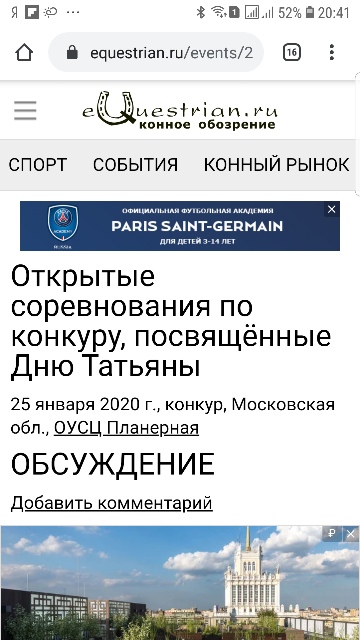 25 января в ОУСЦ Планерная проводятся соревнования по конкуру.