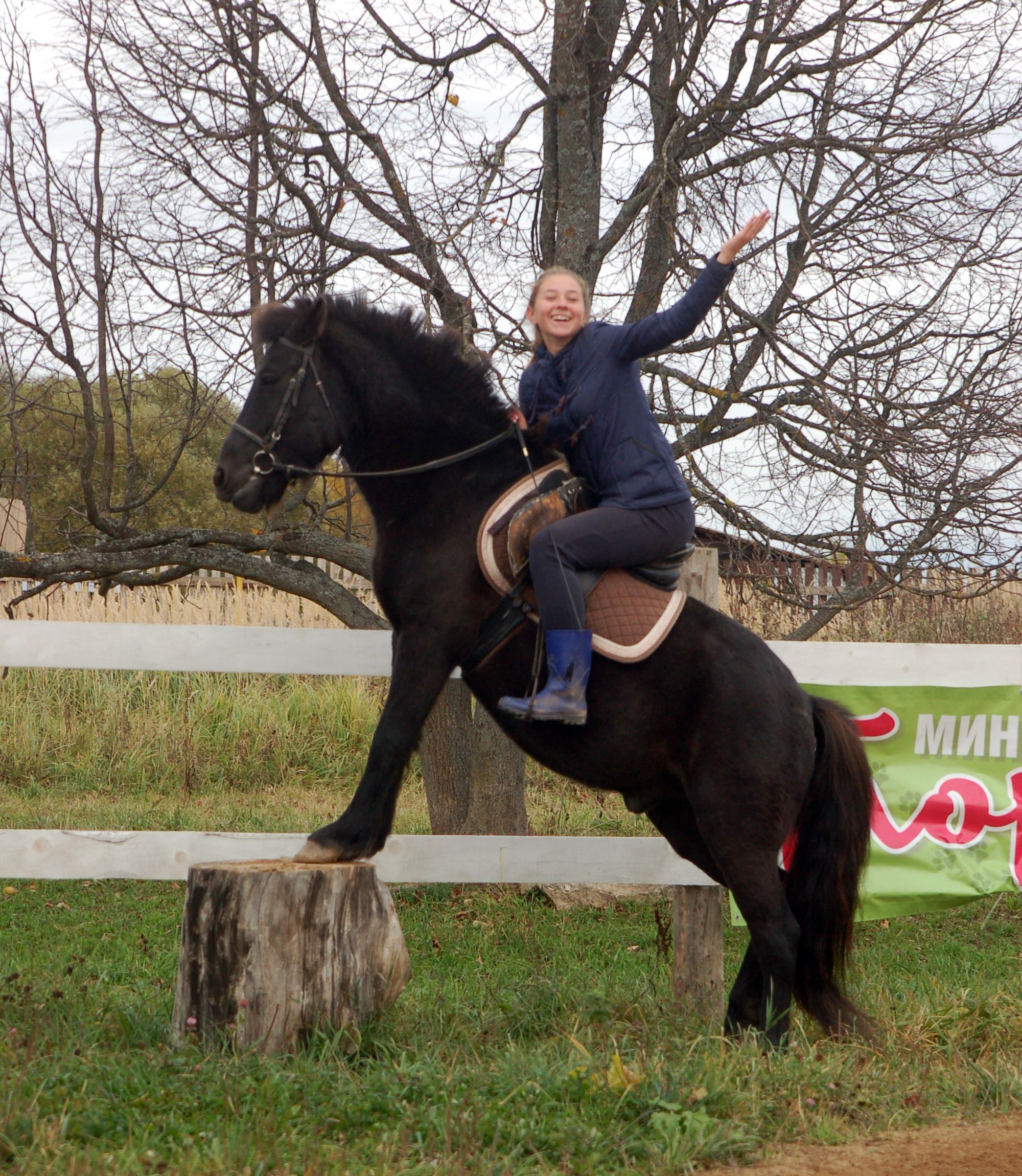 2. - коб. Гроза, вороная, в\х 155 см., 10 лет, буденовская помесь, уровень сильный-средний, немного прыгает( до 1 м.)