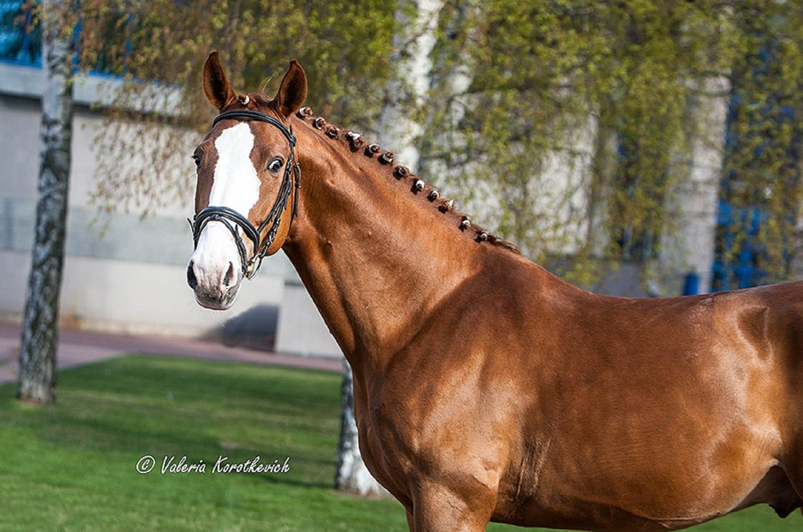 Конь рождён и выращен в нашем хозяйстве. Прошёл испытания и кёрунг, лицензирован как производитель. Оценка за двигательные качества 9.1, прыжковые 9.83 балла. Даёт шикарных жеребят перспективных в любой вид конного спорта. Как в конкур так в выездку и троеборье. Жеребята с железными нервами, шикарными летящими движениями, и отличной техникой прыжка.