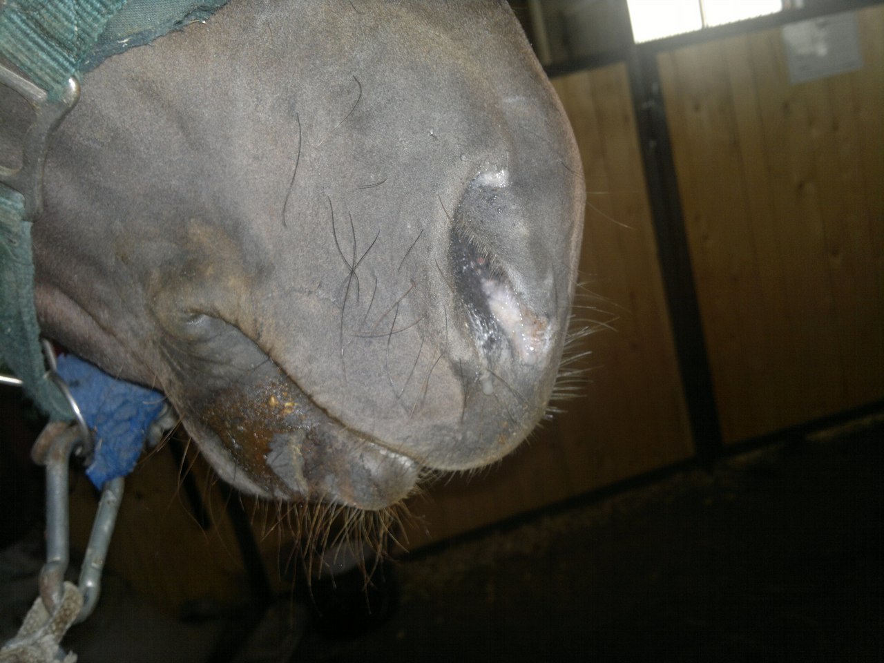У нас несколько лет назад почти вся конюшня переболела такой ерундой. Это от соплей. Разъедает слизистую. Лечили имуностимуляторами, а носы мазали спасателем.