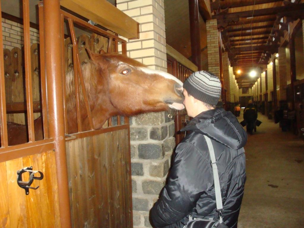 Больничный обошел стороной, мы как приехали на конюшню и разгрузились, сразу побежали пить горячий чай и сохнуть :D . Когда открыли коневоз, Гулан просто пулей выскочил на одних задних ногах и стал озираться по сторонам, осматривая окрестности)))). Прижился сразу, рыжий, да к тому же дончак, он всем понравился. На той конюшне очень много ахалтеков стоит для пробегов, РВ, голштины и гановеры. В целом этот КСК пробежного направления. Единственно совсем нескаковой это полутяж, пони и ослик. Раньше там еще и большой кролик жил, но его конюха потом съели :shot: .