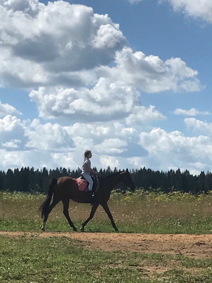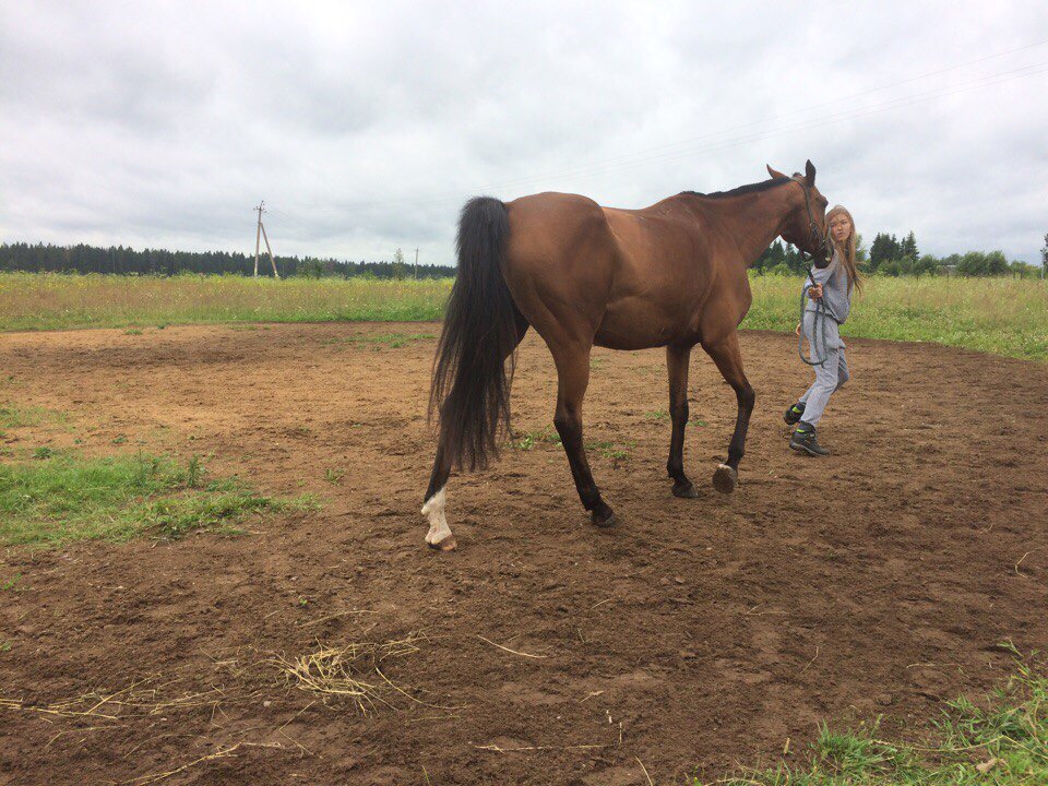 Кобыла после спортивного прошлого,имеются ограничения по нагрузкам в плане ног. Несет полноценные хобби-нагрузки: шаг,рысь,галоп,переходы,вольты-восьмёрки,поля. Не в спорт,не в потоковый прокат! Ни в каком лечении не нуждается.