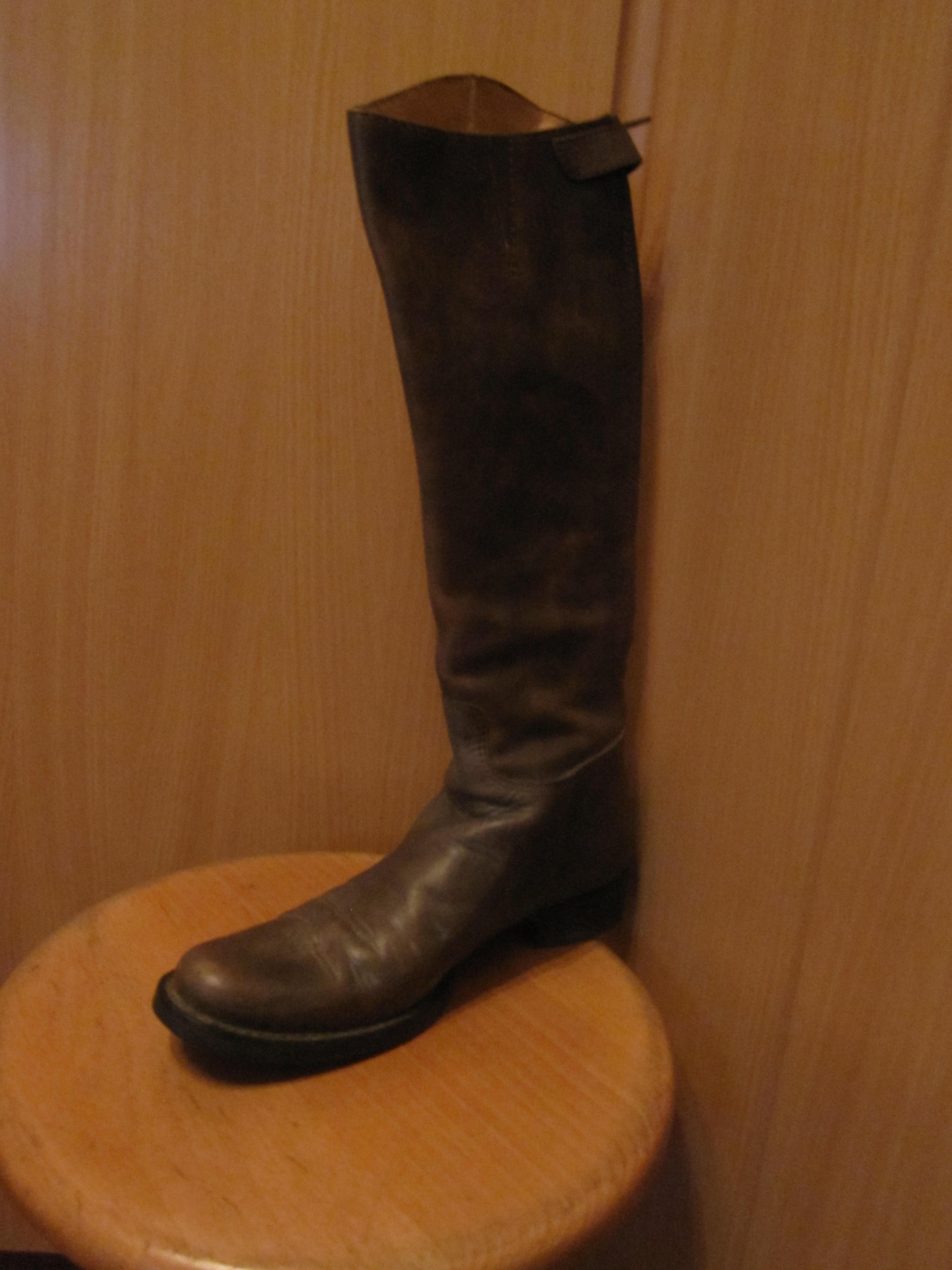 Как вариант - обмен на новые кожаные сапоги-жокейки, 38-39рр. Вполне можно в них ездить, отличные, высокие, крепкие, гладкая подошва, цвет коричнево-серый, сзади молния по всей длине + хлястик на кнопке. мне не сели по голени.