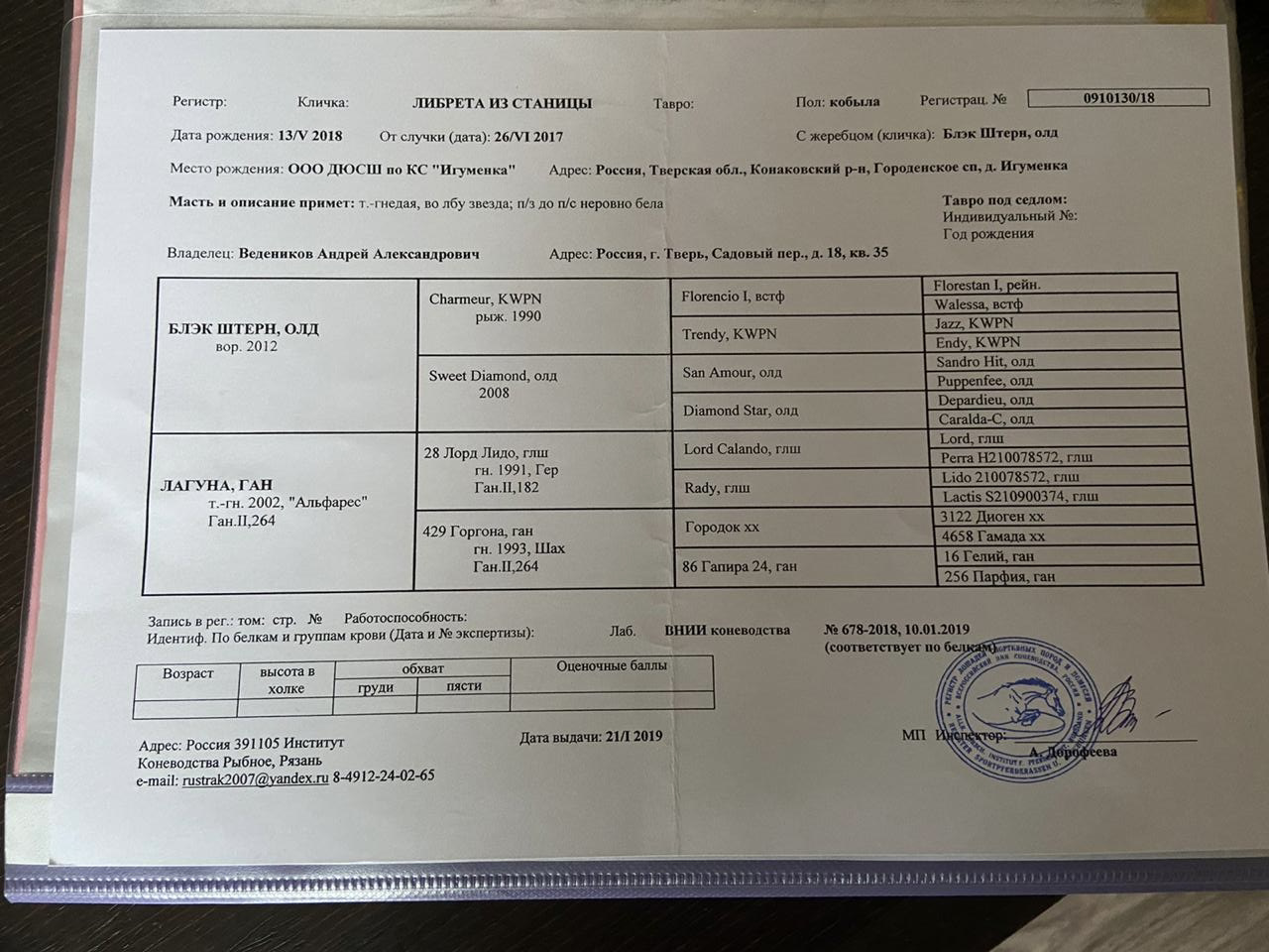 Продам кобылу Либрета (о Black Stern - м Лагуна (ом Lord Lido)) полукровной спортивной породы 2018 года. Рост 169 см. Рассмотрим обмен на КОНКУРНЫЙ молодняк. Вся дополнительная информация, фото, видео по запросу. Тел.: +79157212985 Андрей.