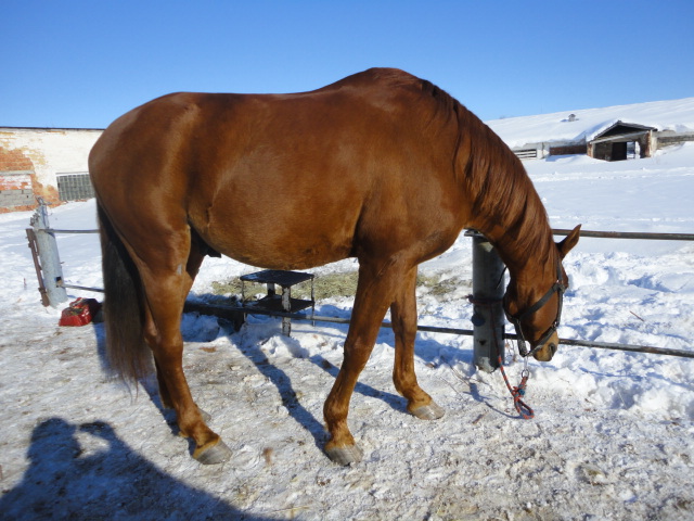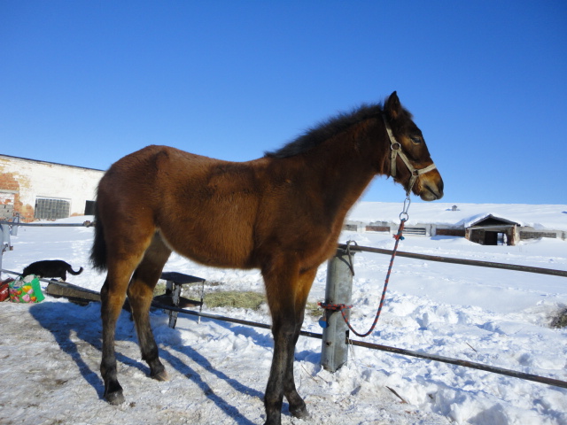 Ладно,поехала в конюшню.Приехала я туда вместо трех часов к часу.Зашла к Малышу.Он один в целом коровнике весь мокрый стоял. :cry: До конюшни я дошла с мокрыми ногами-решила путь срезать и потопала по снегу.