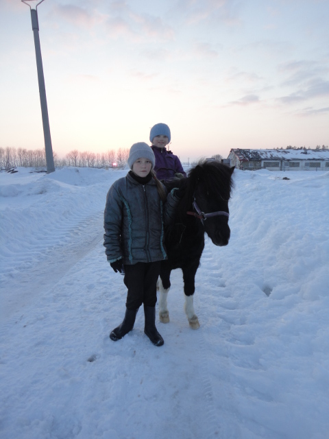 Сейчас объясню как у нас дорожки до конюшни проложены,дабы вам весь прикол понять.От остановки метров 500 по сфальтовой дороге надо топать,а потом повернуть направо и там еще метров 100-200 по бетонной идти.Ну так вот,когда я повернула на бетонку поняла,что в кедах я там не пролезу...Но деваться было некуда-поползла по эти сугробам.И добрый тракторист пожалел меня и расчистил мне дорожку :wink: А трактор такой огромный!На него смотреть страшно.В нем же три моих роста...