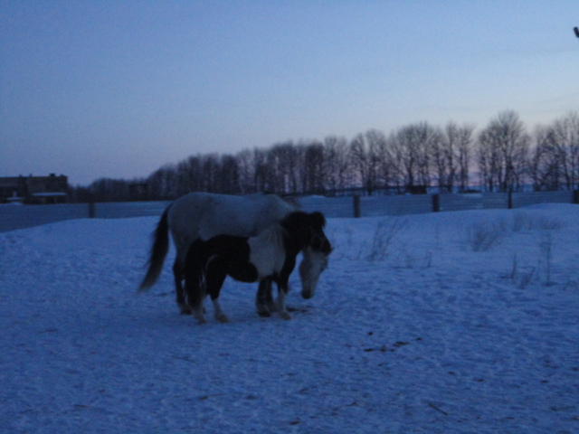 Народ лед отбивал...опять.А я рыжесть пошла чистить.Почистила и меня отправили с одной из девушек рысить.Скучно ей видите ли со всеми в манеже.А она еще и в посадки захотела поехть.Ну в посадки,так в посадки.Я то пешком шла,по небольшим,но все таки сугробам.Мы уже прошли больше половины пути и тут девушка заявила мне,что ей холодно.Обратно захотела.Ну блииин.Пришлось обратно шмякать :x