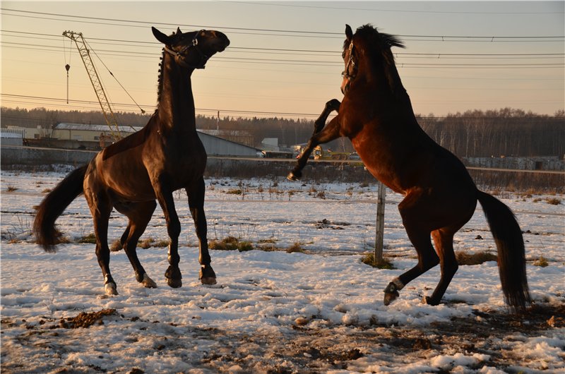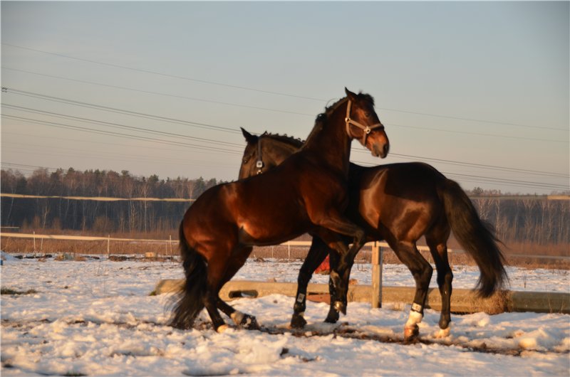 Отчаянные вы люди - кованных на шипы лошадей вместе выпускать, да еще по такому грунту. Мне совсем не понравится приехав, обнаружить покусанную или побитую лошадь, которую я хотела поработать.