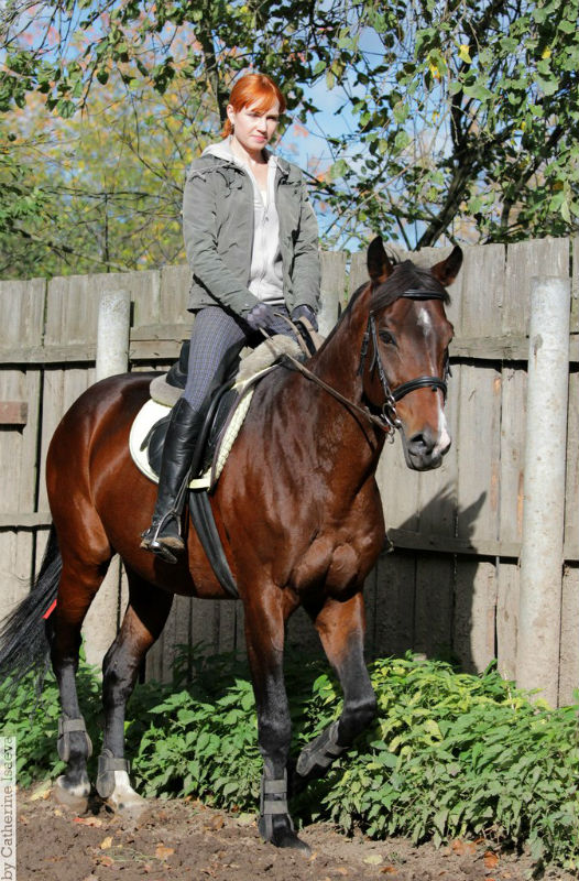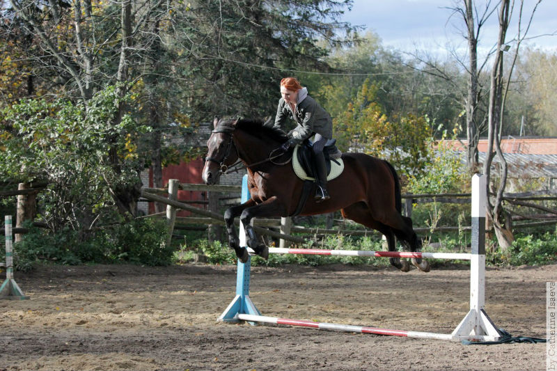 Первым "попал" Орешек)) И хорошо попал)) Удивительная он все-таки лошадь. По мне - ужасно недисциплинированная в руках, и шило*опая под седлом. Он в принципе откровенных гадостей не делает, но все время крутится, вертится, что-то предлагает, куда-то присматривается... В общем, за это я его не люблю... Но! Как же он четко прыгает, когда втягивается... Просто отлично считает, хорошо толкается, единственное, почему я ему не очень на прыжках доверяю - он почти не наращивает перед барьером. Поэтому я до последнего в сомнениях - прыгнет или нет и иногда отстаю... Ну да это было лирическое отступление, а если вернуться к субботе, то окажется, что мы с Орехом незаметно пропрыгали метр в тройной системе