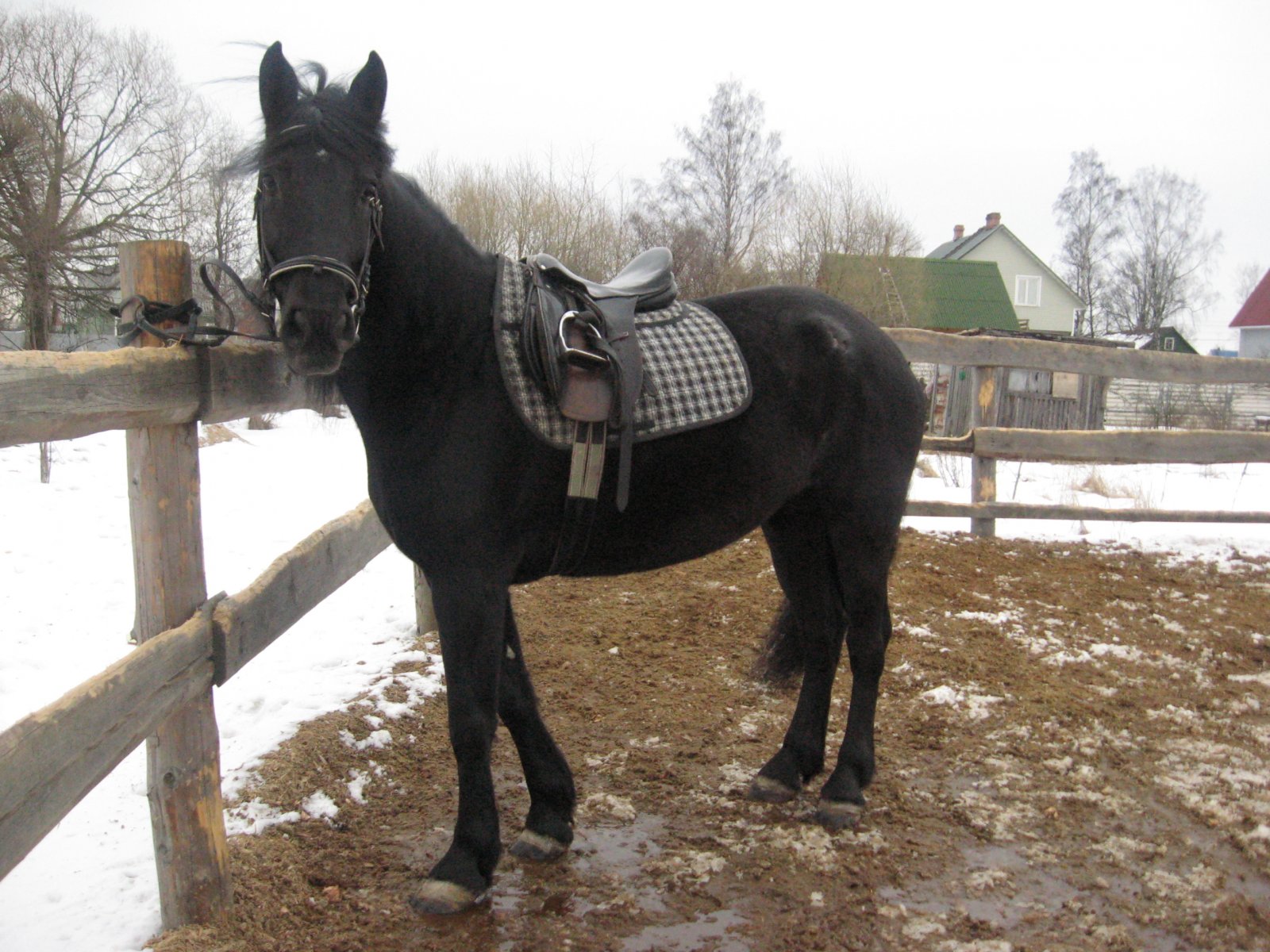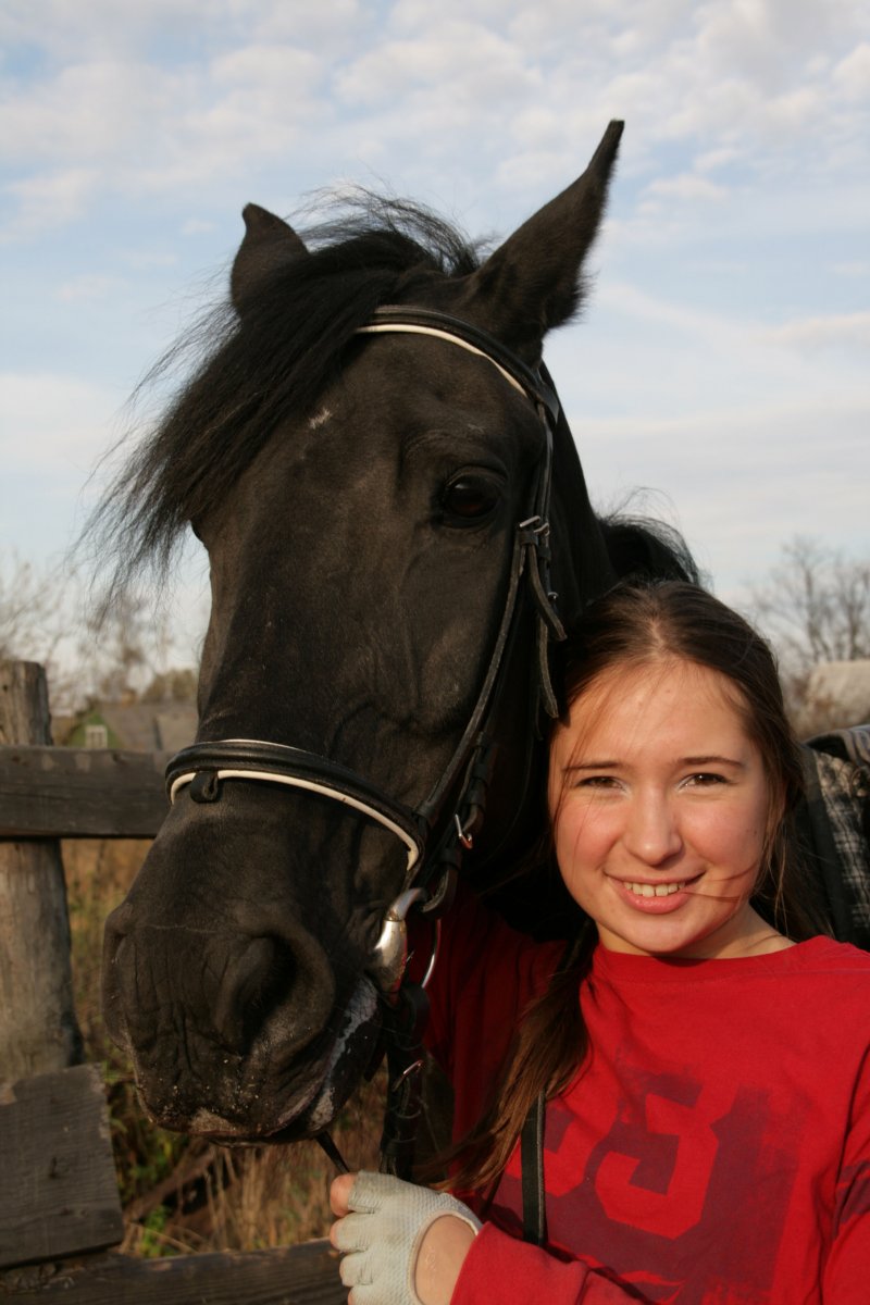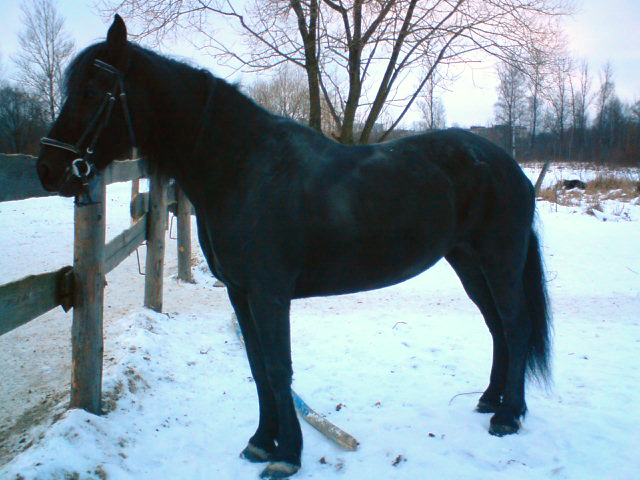Вороная полукровная кобыла Азалия (мы звали ее Зуля). Невысокая в холке, с белой звездочкой во лбу. Не знаю, жива ли она еще, в 2009 году ей было под десять лет. Она была у меня в аренде в Санкт-Петербурге (Усть-Ижора), потом я держала контакт с ее новыми хозяевами в Новгородской области. В какой-то момент связь ослабла, а потом я узнала, что они ее продали в Московскую область и тоже потеряли контакт с новой хозяйкой.