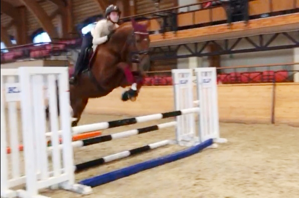 Вчера попрыгали верхом. Лошадь, которая была несмотрящая на барьеры, после прыжка улепетывает от жердей как потерпевшая..... (((