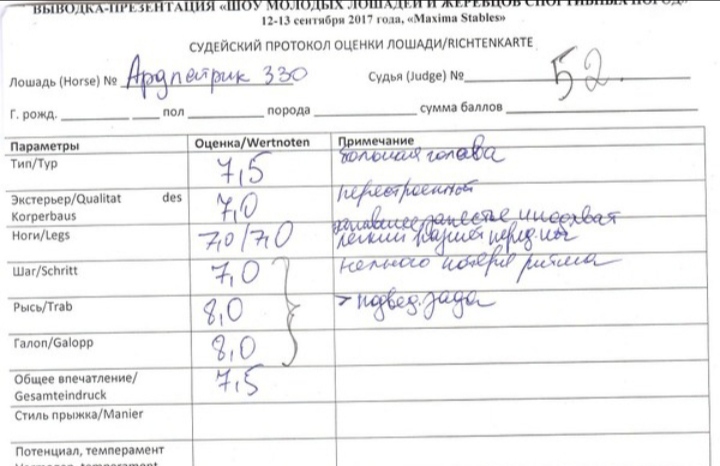 . У него всегда, с самого рождения был галоп, с отличным поведением зада - отсюда и оценки 8. Они никуда не делись и их можно ещё улучшить верховой работой.