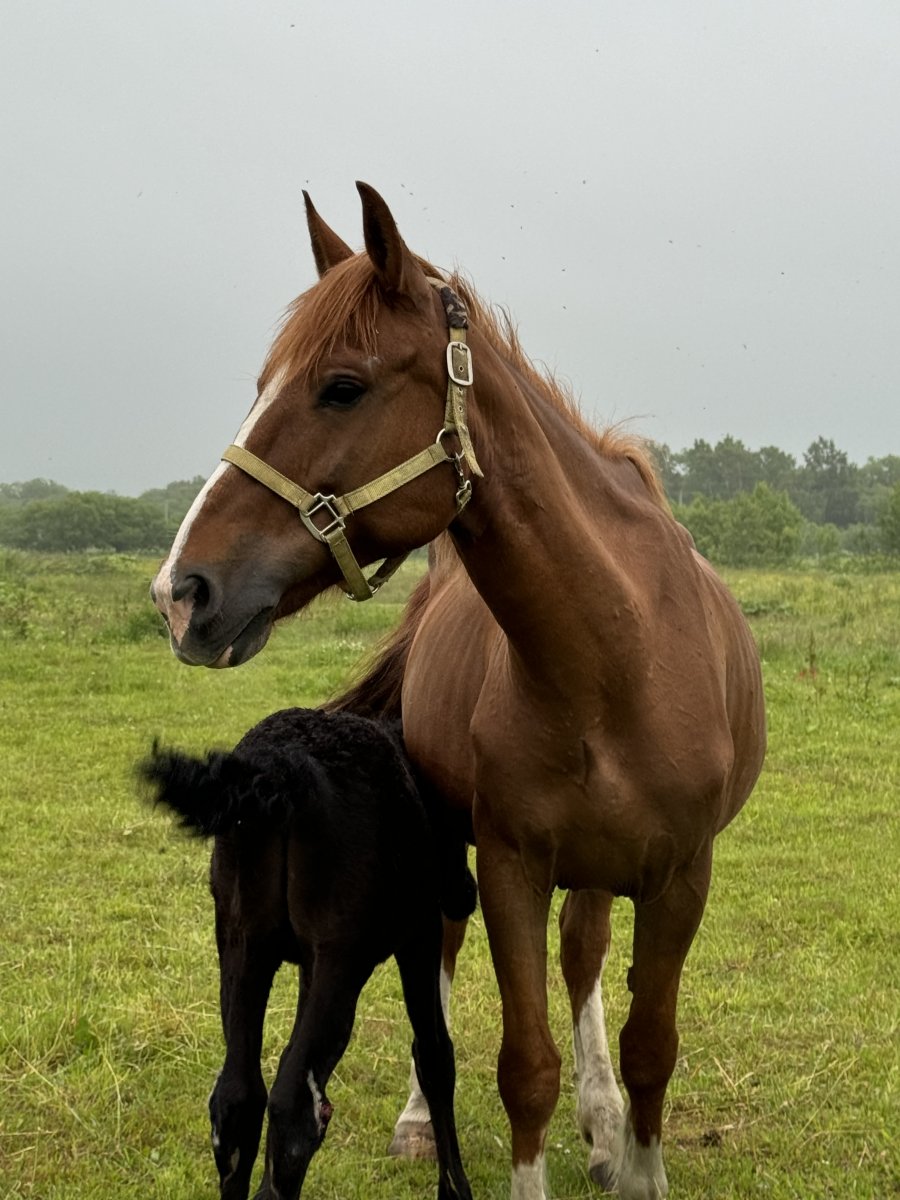 Первое время жеребость проходила хорошо, но по приближению срока родов она начала сбрасывать вес. Ее рацион пересматривали и меняли, что, к сожалению, не принесло особых плодов. Остановились на варианте открытого доступа к сену вода и 2 разового питания, состоящего из кормов и овса и подкормок.
