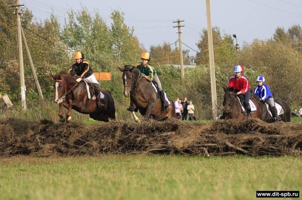 В субботу выбралась с мужем в Ропшу посмотреть на стипль-чез. Все-таки раз в год бывает. Погода удалась, жарко, солнечно. Добрались мы туда вовремя, к 14. Позже приехала Алена и на мое удивление Ольчик )) Я думала только мы такие придурки в такую даль переть. Сначала смотрели разминку, девченки прыгали троеборное препятствие. Потом была первая барьерная скачка для молодых коней. Работал тотализатор )) И самое смешное, что я угадала победителя )) Надо было ставить . Потом барьерная скачка для молодых всадников. Хотела бы я посмотреть в глаза родителей, которые пускают своих детей на беговой круг с бАрьерами...Психи. На финише одна девочка перенервничала и упала, а лошадь, которая пришла последней вдруг, поднакопив силы, улетела в даль, в деревню. Не знаю, догнали ее или нет.....