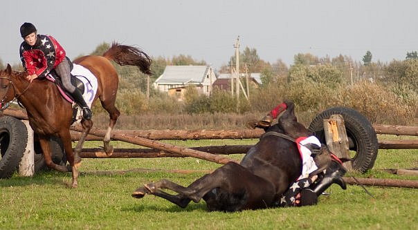 На самом деле, когда они упали, в первую очередь я подумала о лошади..почему не встает..такая красавица, так ее было жалко.... Девочка сама знала, куда лезть, всем известно о стипль-чезе..но лошадь не виновата (((