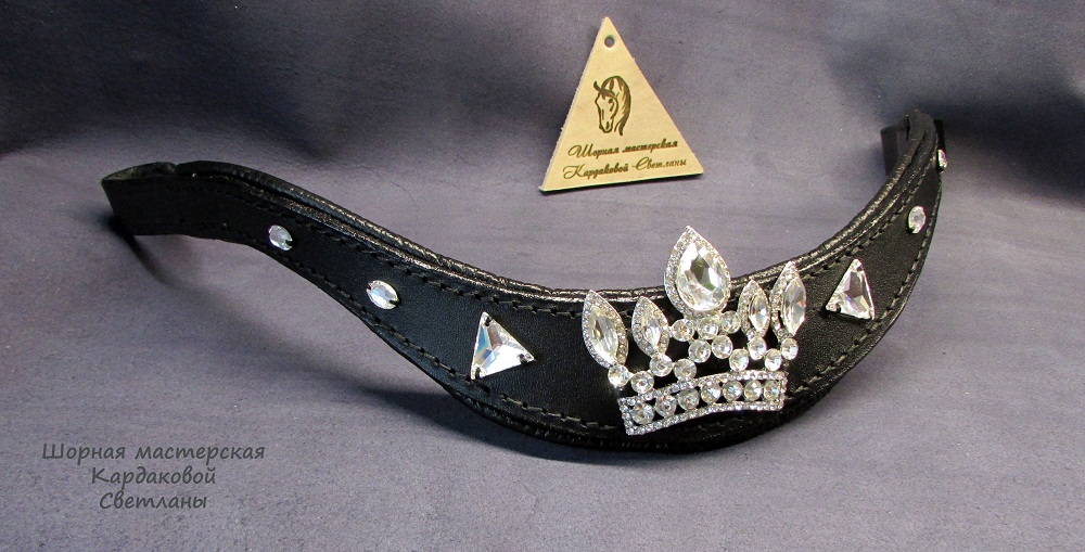 Пряжки Корона в золоте, шлевки удлиненные, затылочный ремень анатомический, отставленный назад.