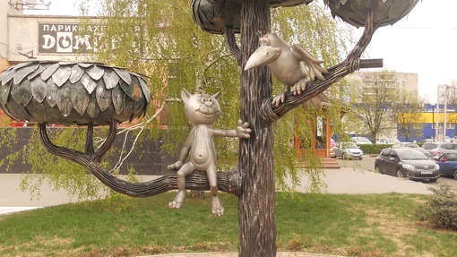 Могу картинки скинуть где статуи изображены поближе. У детей завязаны глаза. Они ничегошеньки не видят вокруг себя. Ансамбль из статуй огражден забором и находится под охраной. Подойди поближе невозможно.
