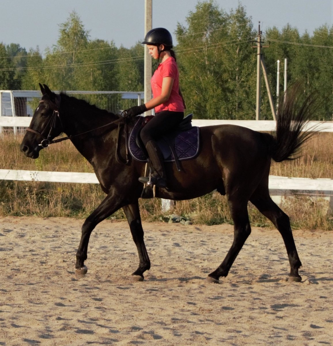 Ездит опытный ребёнок 12 лет, очень мягкий на рот и шенкель. Управляется пальчиками, не разносит. Под одного человека. Можно заниматься ХНей, есть интересные изюминки в поведении. В езде не мешает.