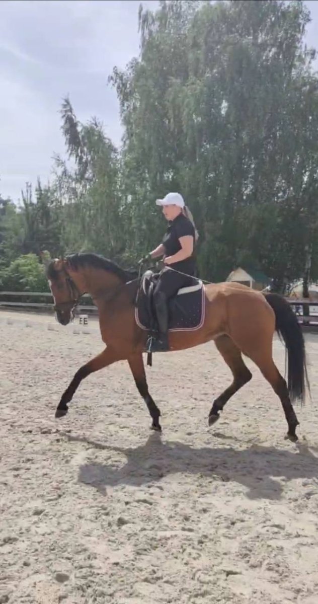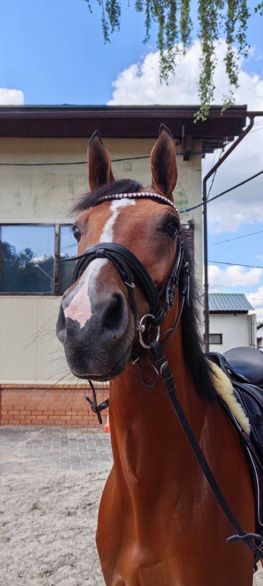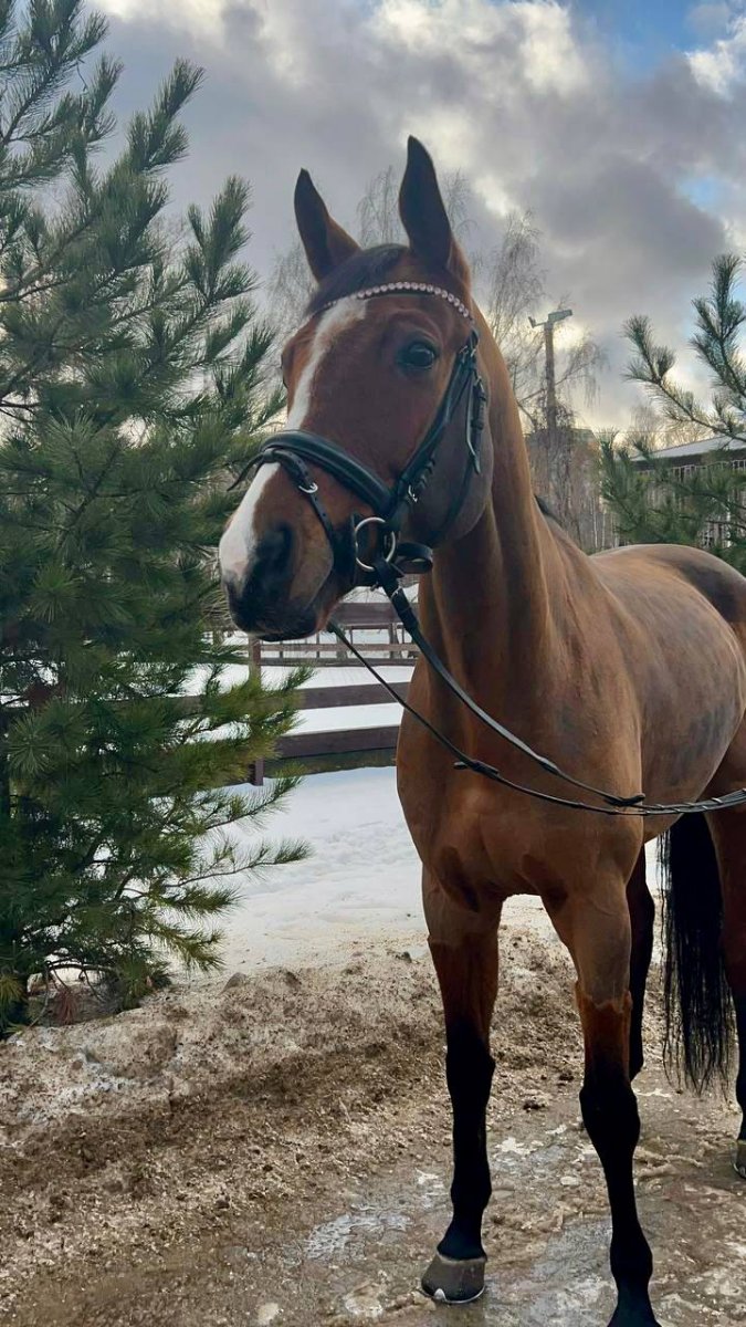 Имеет стартовый опыт по Юношеским ездам (66-67%, может выше), Детским ездам (68-76%). Знает элементы и связки МП. Также стартовала под слабым ребенком. Легкая на средства управления, ничего не боится. Перспективна в большой спорт.