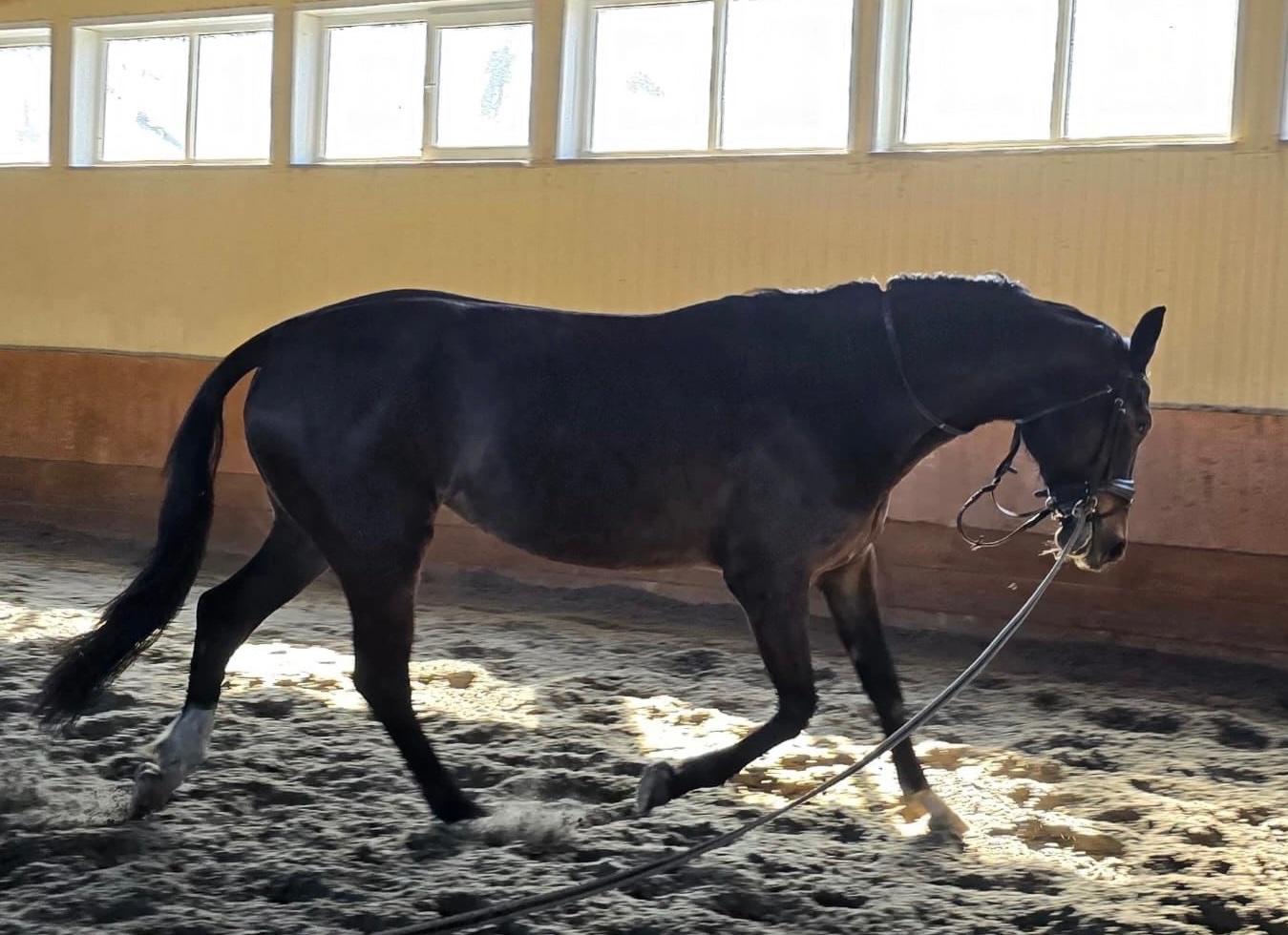 Поздней заездки, не форсируется. Бегает 3 аллюрами под седлом, знает уступки на шагу. Работается в выездку. Пластичная, активная, с хорошим природным импульсом. Перспективна в спорт.