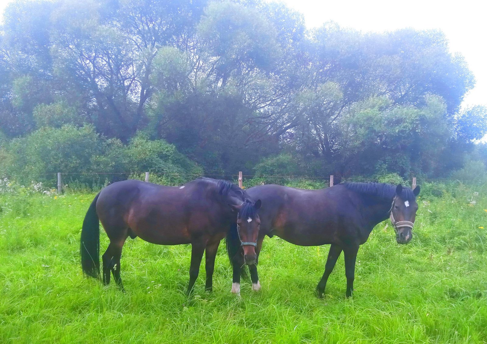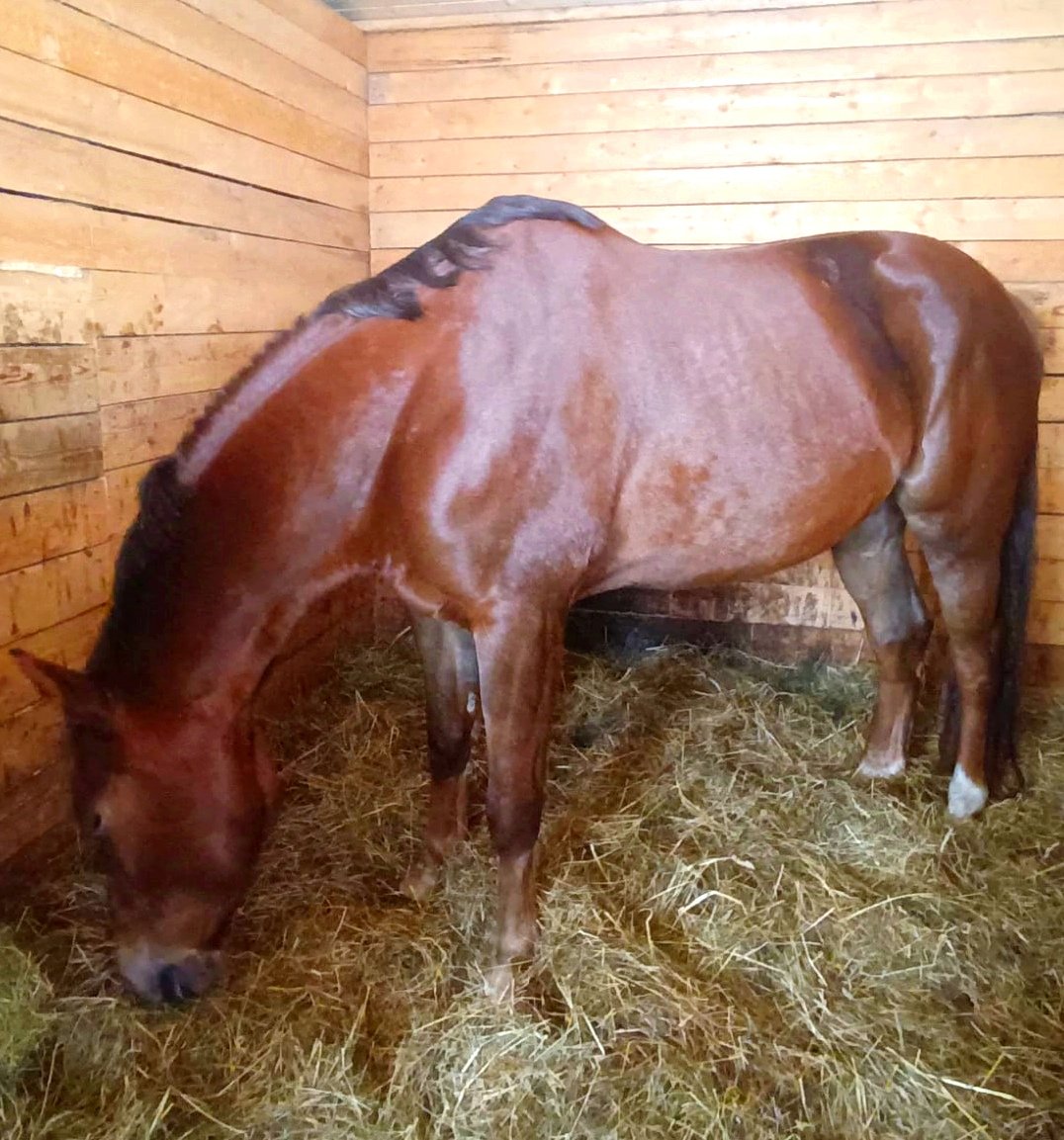 * Выпас и выгул на территории 1,5 га, разнотравье. Сено вволю, поилка на 50 л в доступе, моется ежедневно. Если вода замерзает - лошади поятся вручную тёплой водой каждые 3 часа.