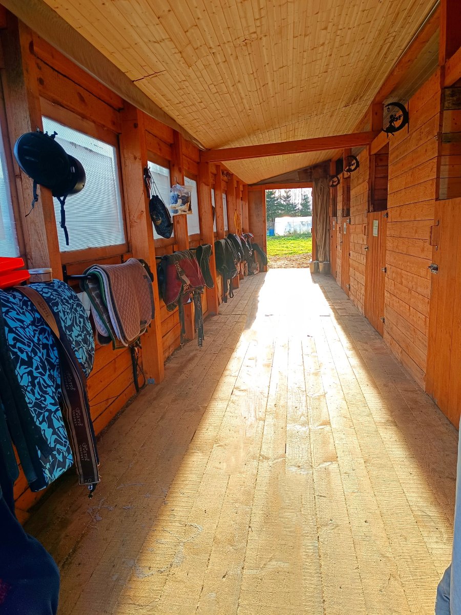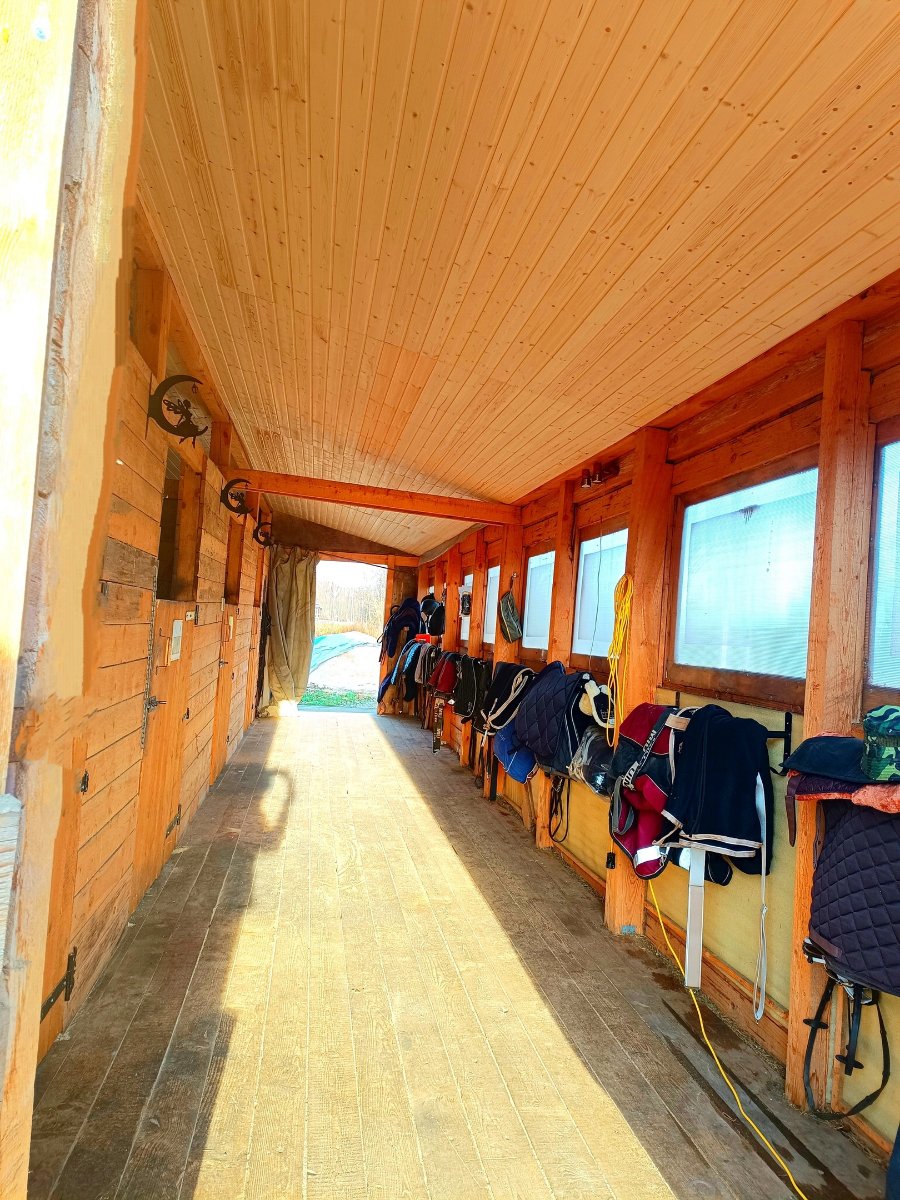 * Тёплая конюшня с хорошим микроклиматом. Денники 3,5х3 м, проход 2,5 м, потолки 3,6 м.