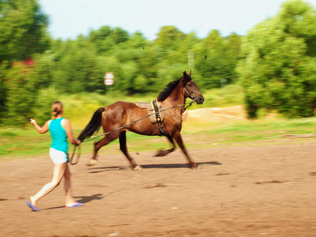 почти все лето я проходила в ЦСКА, тренер сажала на коня и в самое пекло - конечно получались не тренировки а ужас! Представьте себе градусов 30 на солнце и тренировка. Я была как и конь в пене каждый раз. А потом, в один из дней, я забрала все вещи и больше туда не пришла. Сходила в Сокорос один раз! Это тоже отдельная история. Позвонив на рецепшн, я объяснила что меня интересует не прокат и тренер мне нужен по выездке, ответ был положительным. Я приехала ждала тренера час, не меньше, пришла девушка, пошли лошадь собирать, еле нашли седло и прочую амуницию. Дали мне "белого" арабского мерина, а в придачу к нему декатлоновскую универсалку. Пришли в манеж первую часть занятия я пыталась хоть как то заставить коня обратить на меня внимание, а вторые 30 мин МЫ (я и тренер) поднимали коня в галоп - не у меня не получилось
