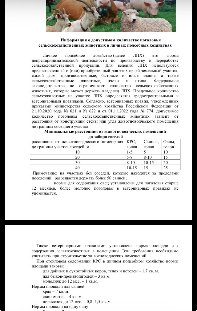 Федеральное законодательство не ограничивает количество сельскохозяйственных животных, которые может держать владелец ЛПХ.