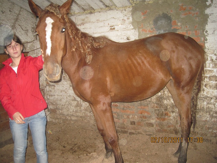 Да, заваренного овса или каши как факта нет. На конюшне, где она стояла до 2 лет была каша, но кормили совсем скудно, сена мало и плохое, проблемы с ростом оттуда, я думаю. Вот в таком виде мы оттуда уехали. Это ровно 7 мес назад.