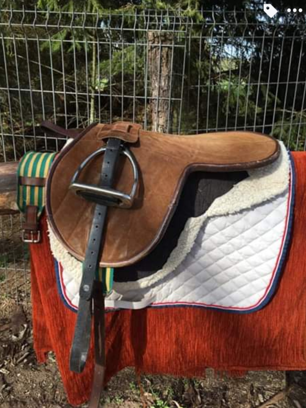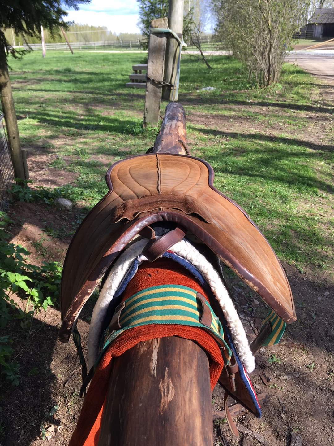 Это седло без ленчика. По сути это войлочный пад с крепежом для стремян и подругой. Сверху обшит кожей или замшей. К лошади войлоком или обшивают сукном.