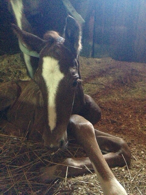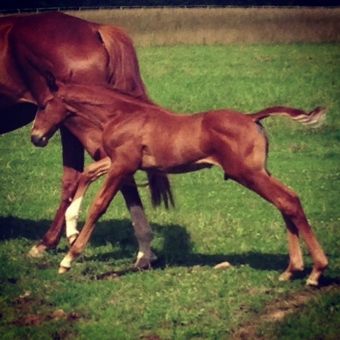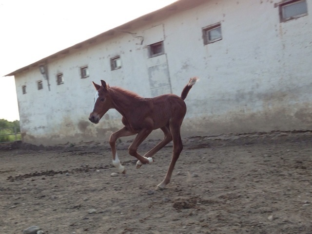 Киса - ожидаемый и желанный ребенок. А все началось в январе 2005 года(!) именно тогда из Белоруссии нами была куплена его бабушка Паллада. Это была очень строгая и своенравная лошадь, она мне понравилась с нашей первой встречи. За те годы, которые она прожила у нас, Паллада родила 5 кобылок. Говорят, где хорошие условия рождается больше кобылок, видимо Палладе у нас очень нравилось. Самой любимой из дочерей Паллады для меня стала Пьеза, она же и самая придурошная из всех. Пьеза - взбалмошный холерик и истерик, но при этом и очень ласковая домашняя лошадь и с невероятным умом, во время получения базового тренинга она проявляла себя примерной ученицей. Все испортил один "Бип-бип" от Юлии Евгеньевны, во время сего звука Пьезу перестегивали, она сорвалась, порвала уздечку и на всю жизнь запомнила этот инцидент. И вот, настал момент Х, Пьеза зажеребела и благополучно отходила все 11 месяцев с Кисой под сердцем. Несколько суток Полина бодрствовала и ожидала жеребенка и как обычно по закону подлости никто не рождался и стоило мне уехать на один день поспать домой, как в 6 утра 29 июня 2013 года, меня разбудил звонок конюха: "Пьеза родила жеребчика". Счастью не было предела, но вот все гладко увы не прошло, по истечению на тот момент уже 4х часов после рождения малыш не вставал. Пришлось ехать, маленькое рыжее зло, по моему приезду все-таки соизволило встать и выпить наконец молозива. Оставалась одна загвоздка со мной приехала и молодая вет.врач, которую Киса встретил не самым дружественным способом и вытеснил ее 5 точкой из денника сопровождая свое движение подбрыкиваниями - ветеринару пришлось ретироваться.