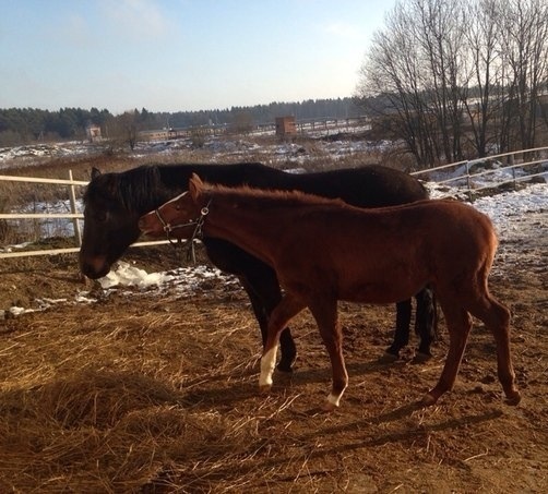 Первый жеребенок появился на свет в 2001 году. Это была гнедая кобылка Барби, более подробно про всех я буду рассказывать уже в отдельных историях. В 2002 году у нас родилось уже два жеребенка, которых мама красиво назвала Петербург и Пиаф, но конюха несколько подпортили мамины величественные клички и звали их просто Петька и Пиявка. В 2004 году родилась последняя ставка жеребят от Влада 1 и последняя мамина самодеятельность.