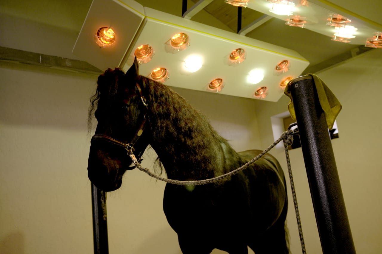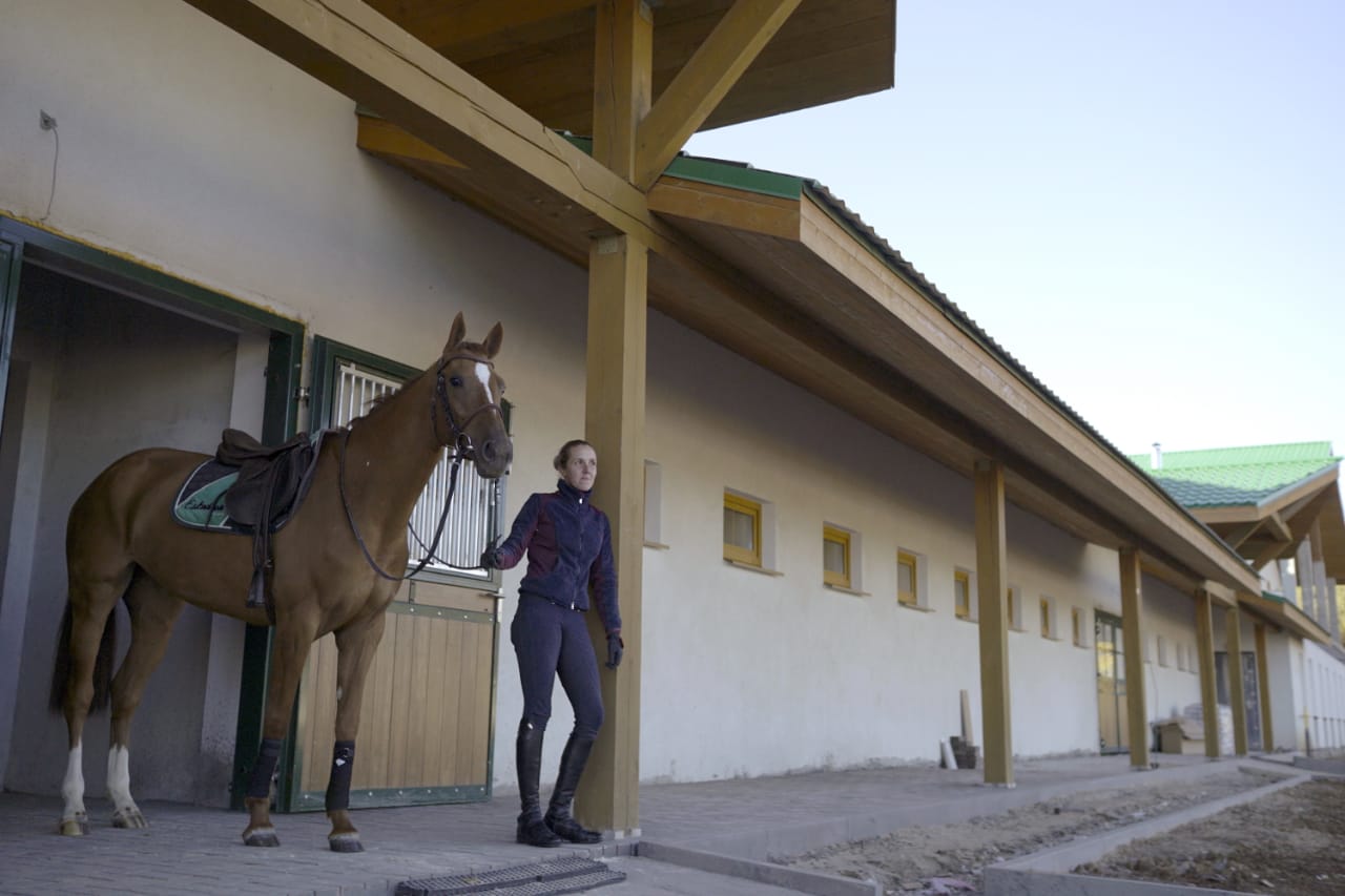 Уже сегодня для постоя открыта уютная и стильная конюшня на 23 головы (денники 3Х4 метра, мойка с горячей водой, амуничники, седловочные боксы, солярии), уличное поле (размер 80мХ50м с еврогрунтом), а также готовятся к запуску "бочка", крытый манеж с еврогрунтом (размер 66мХ26м) и шагалка.