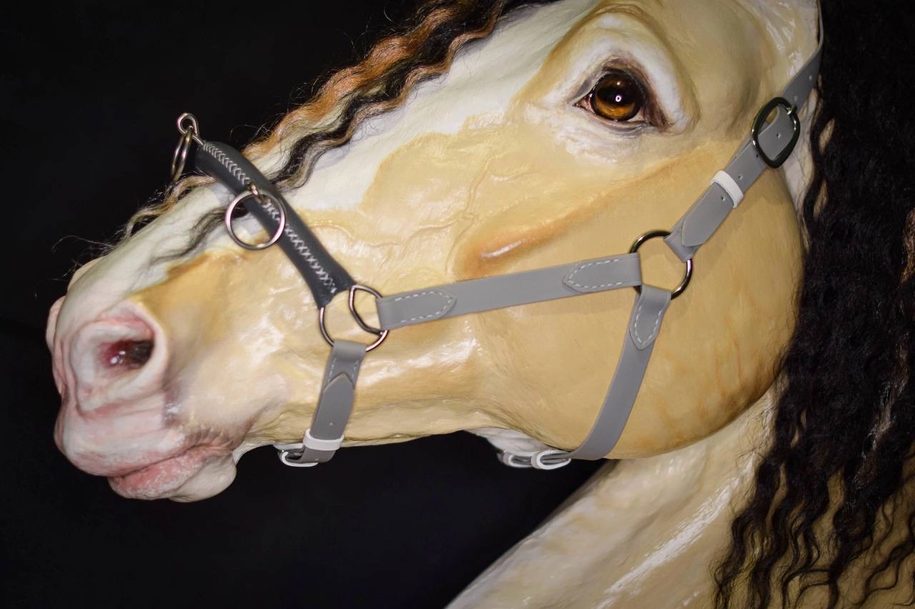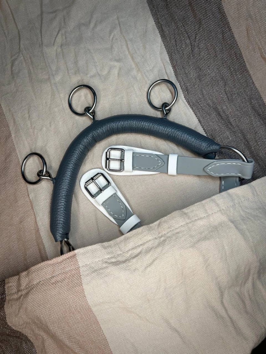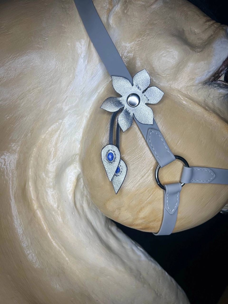 Биотановый кавессон "Просто Мария" серый с цепью, cob-full. Чешская серебристая фурнитура, мягкий аналог биотана, мягкая прослойка под обшивкой цепи, надёжный ручной шов, кожаные язычки под пряжками капсюля и подбородного ремня, съёмная подвеска.