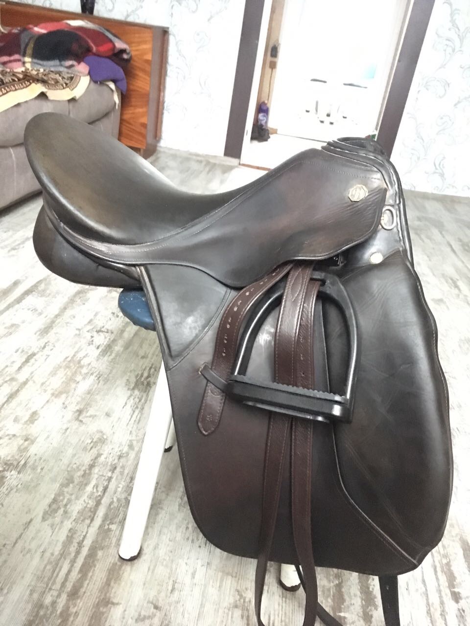 Продам (или обмен на средне-широкую спину)глубокое выездковое седло Kieffer, модель Wien. Размер 17-17,5 средняя спина. На любую холку, имеет V-образный вырез. Седло отлично держит посадку, очень хорошо сажает начинающих, отличный баланс. Подойдет как начинающим, так и опытным всадникам в работе с молодой лошадью. Примерка под полный залог, без примерки продам за 25 тыс.руб.(новое стоит от 2 тыс.евро).