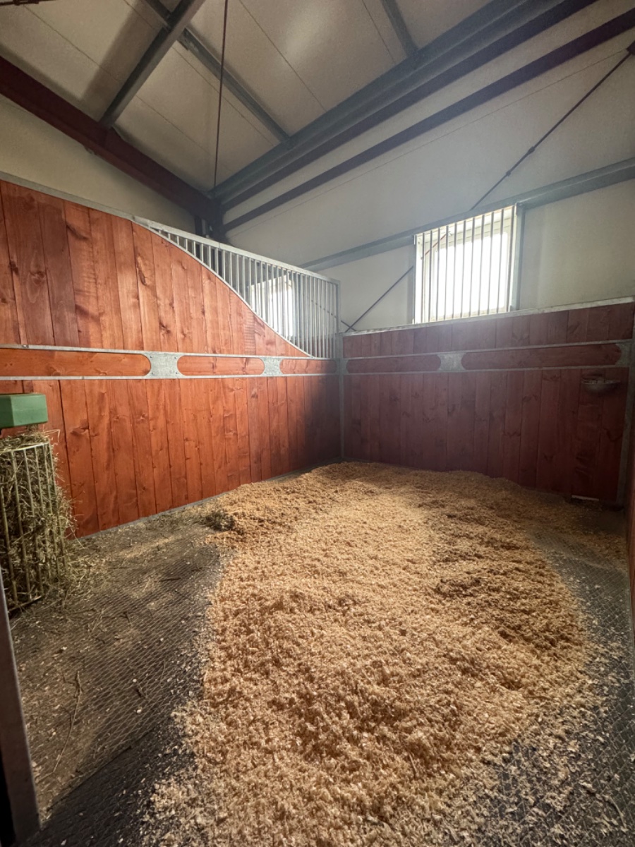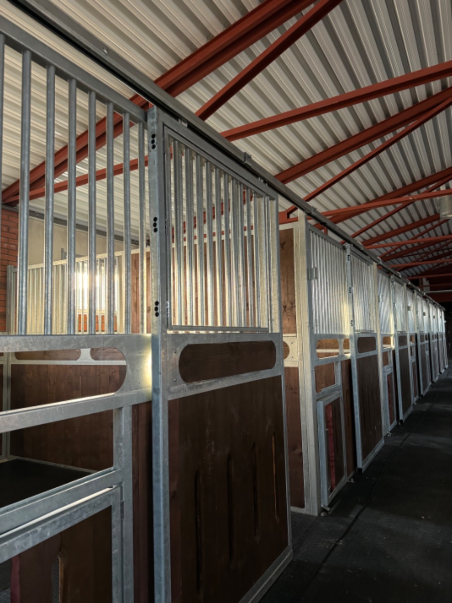 - Eвро денник 11 квадратных метров с вентиляционными отверстиями, поворотной металлической кормушкой, пол из резиновых матов толщиной 2,5см, бетонное основание, на утеплённой подушке. Автопоилка с подогревом. Денники закрытого типа или с частичной обрешёткой, в каждом из предлагаемых денников окно 120*80 см.