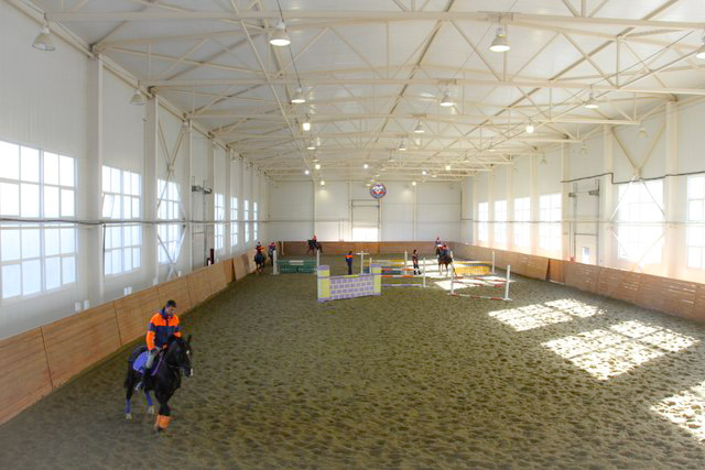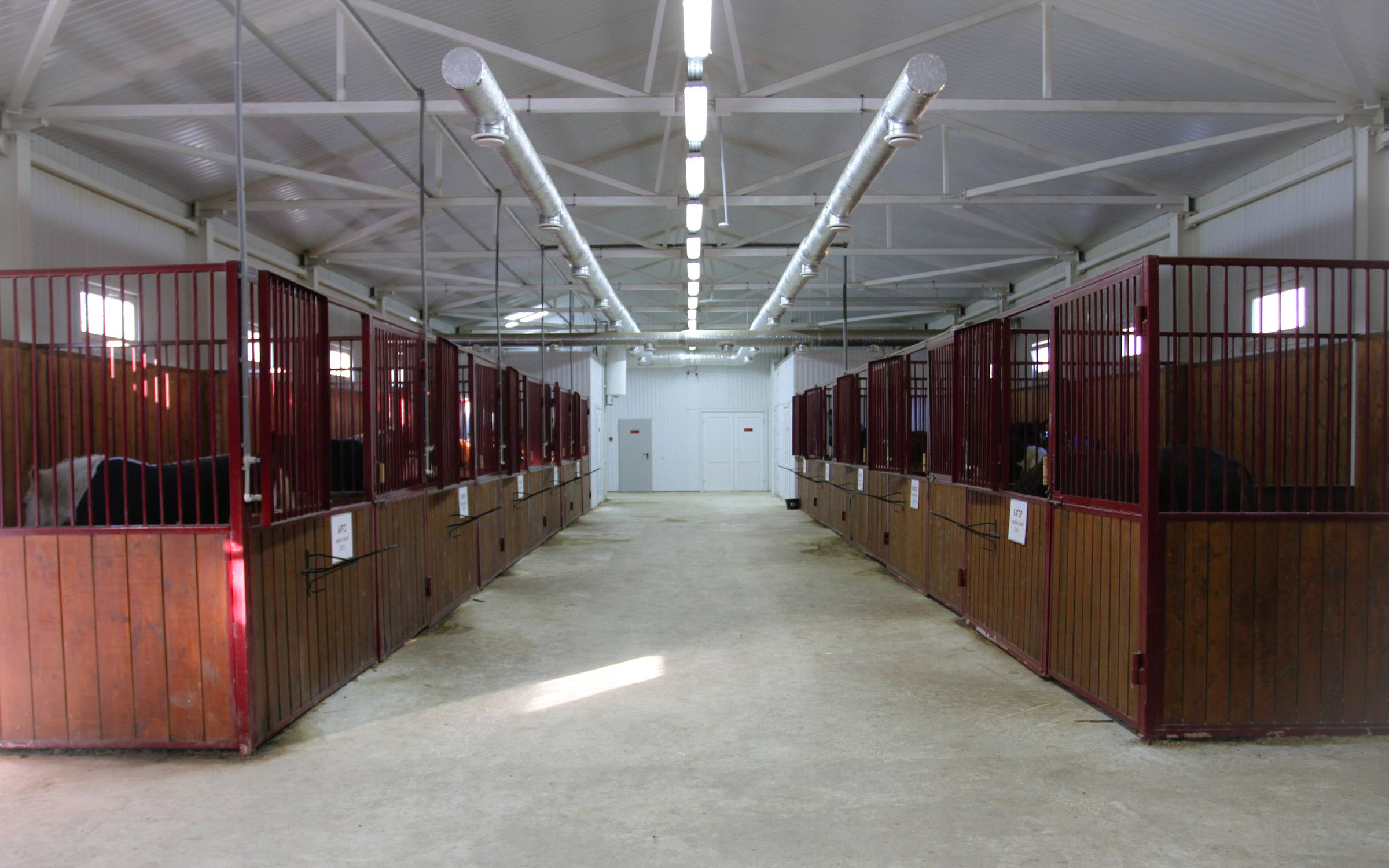 Теплая конюшня, автопоилки, резиновое покрытие, крытый манеж, левады, тёплая мойка, солярий, комната отдыха, душ, туалет, автостоянка, закрытая территория с видеонаблюдением.