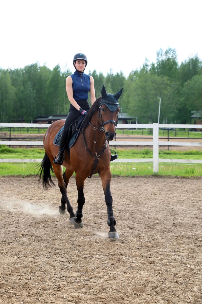 Имеет стартовый опыт по маршрутам до 100 см, дома маршруты до 120 см. Знает некоторые выездковые элементы. Также была в матках, от нее есть 4 жеребенка. Адекватная, безобидная, активная, очень удобная.