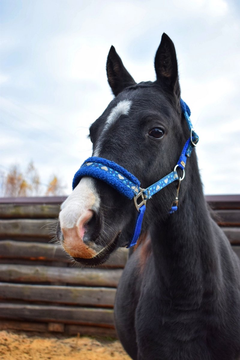 Под верхом шаг и немного рыси под ребёнком. Не злая, не свечит, не скидывает. Чистится, колется, грузится. Живет в мире с шетлендским пони. Со всеми дружит. Настороженна к кошкам и мелким собачкам.