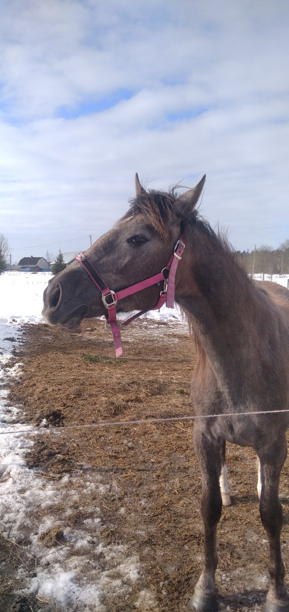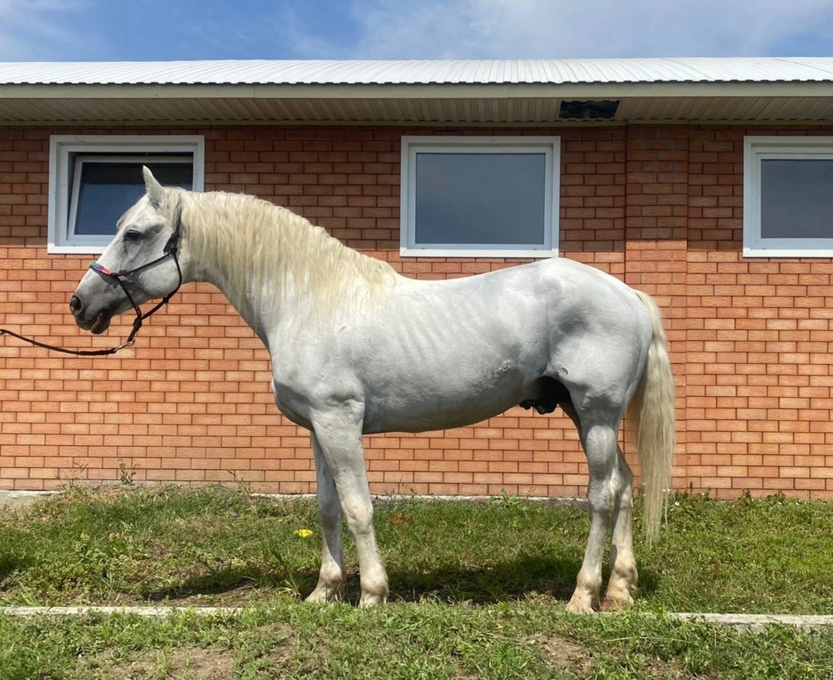 Без подтверждения происхождения. Масть серая. Высота в холке 160! см, растет. Обещанный рост 165. Поставлена на корду, работается на капцунге. Почти готова к заездке. Седло надевали пару раз - в обморок не упала. Умная, красивая, думающая, иногда резкая девица. Под детей, новичков - не подходит! Требует грамотных спокойных рук. Хобби, любительский спорт.