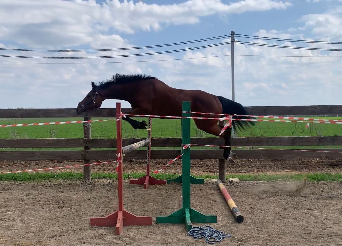 Очень легкие движения и прыжок. Заезжена. Под седлом спокойная: не козлит и не свечит. Начала напрыгиваться в шпринте. Будет интересна в конкур на перспективу.