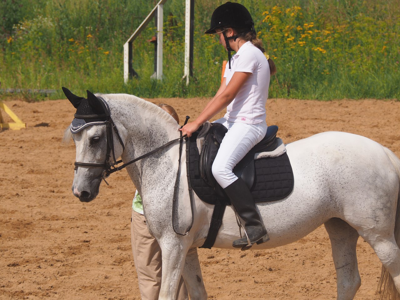 На данный момент находимся 20 км от МКАД по Горьковскому шоссе. Для работы 2 плаца (конкурный и выездковый) и крытая бочка.
