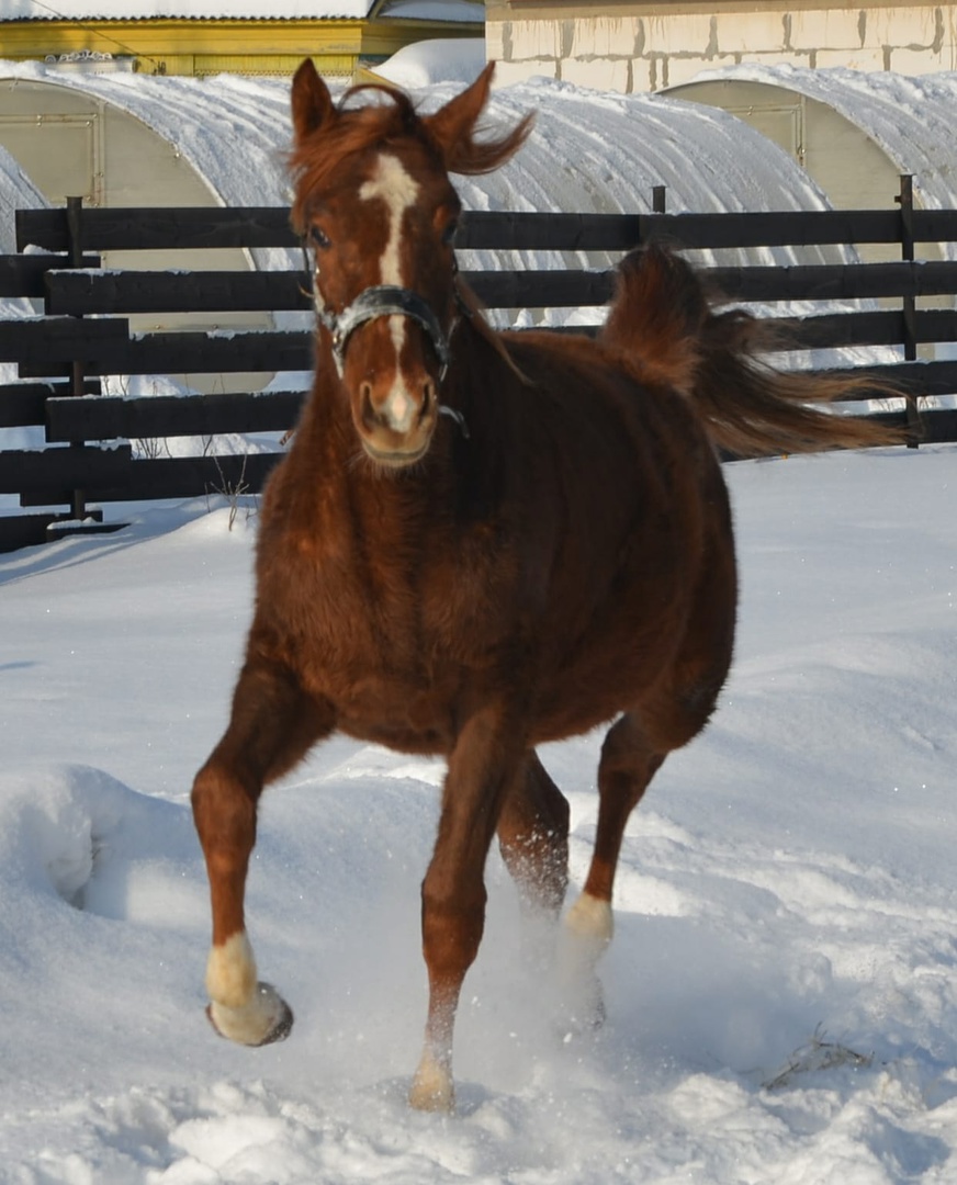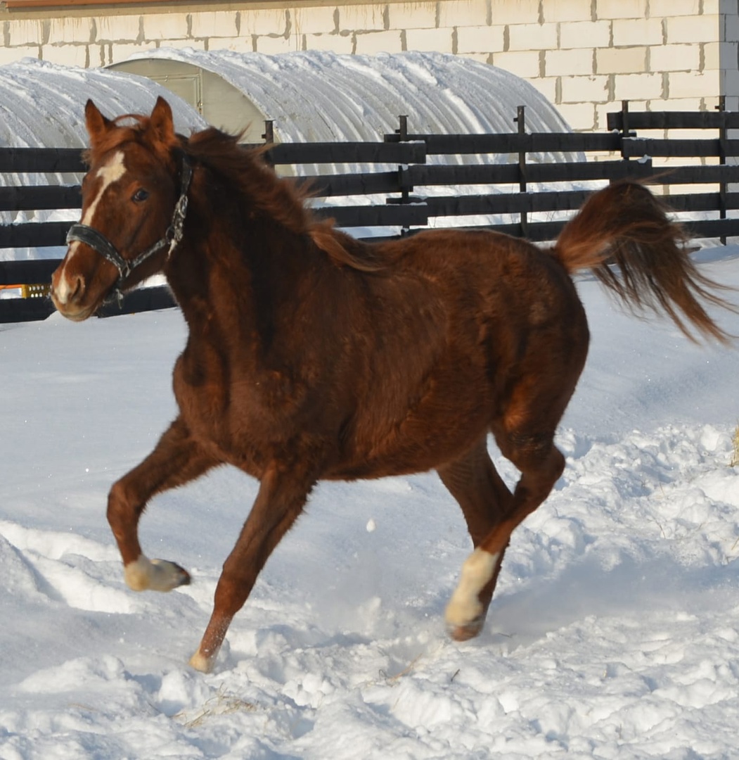 Ничем не обременяли, только гуляет и кушает.(НЕ заезжена, НЕ бегала на корде по маленькому кругу и т.д.).