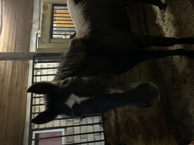 Сейчас рост в холке 155 см, растет и ширеет. Подрастет до 165 см и пролиняет на серую масть в маму (уже на морде явно видна проседь).