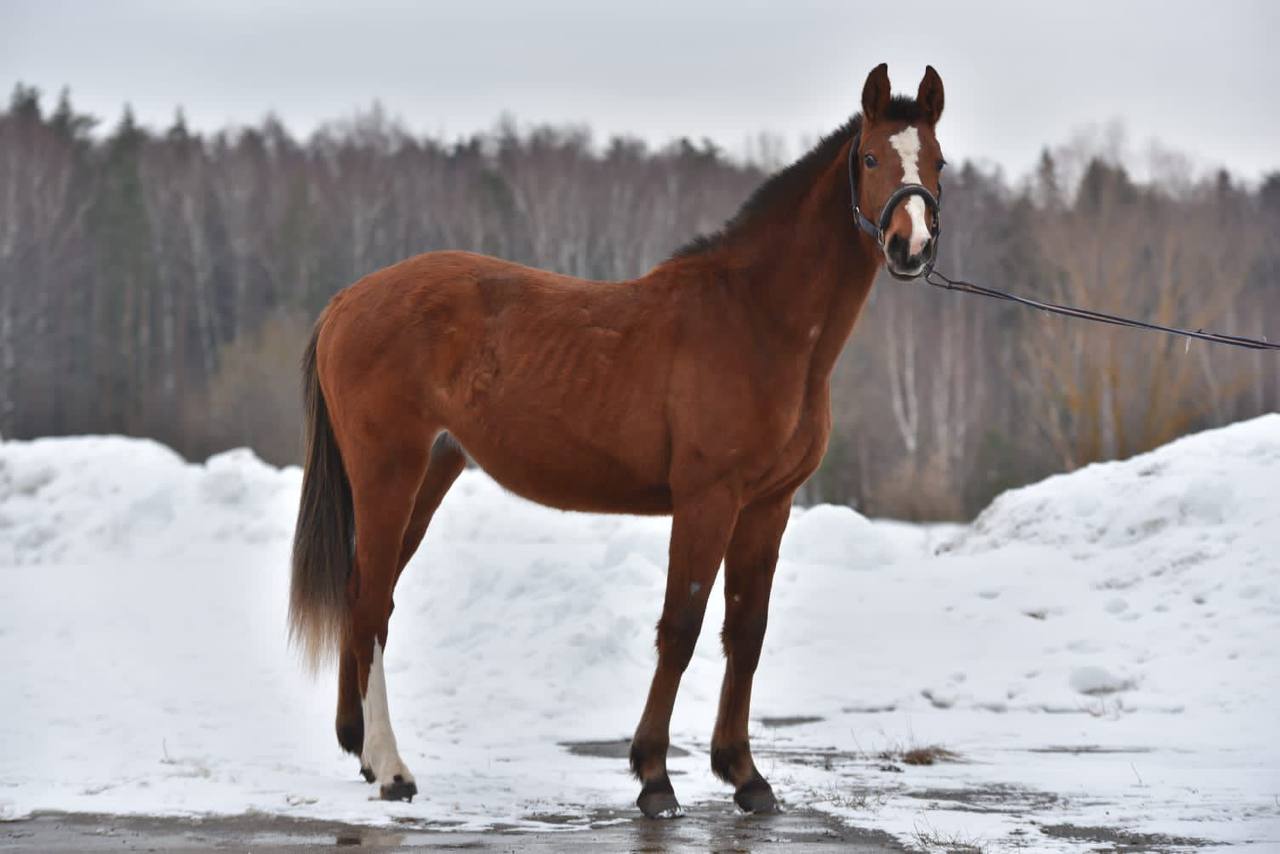 Кобыла спортивной помеси (отец - ганноверской породы, мать - будённо-рысистая помесь). Гнедой масти.