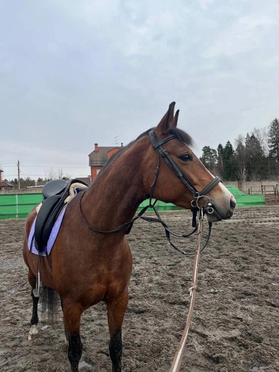 Заезжена в 2024 году, прекрасно бегает под седлом и на корде, напрыгана в шпринте до 120 см. Добрая и ласковая, спокойная в руках и под верхом.