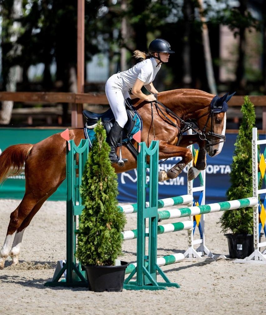 Старты - маршруты до 100 см. Аккуратная, жерди не трогает, сильный зад, отличная техника прыжка. Очень выносливая, любит прогулки.