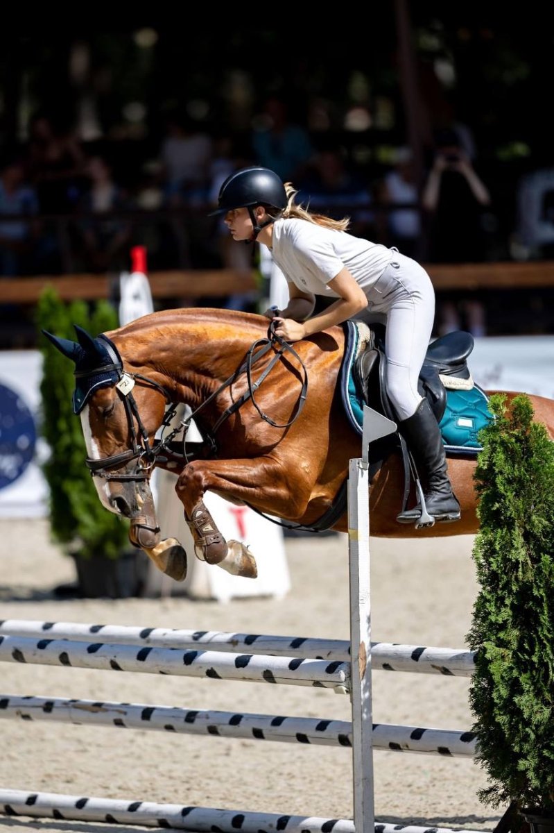 Старты - маршруты до 100 см. Аккуратная, жерди не трогает, сильный зад, отличная техника прыжка. Очень выносливая, любит прогулки.
